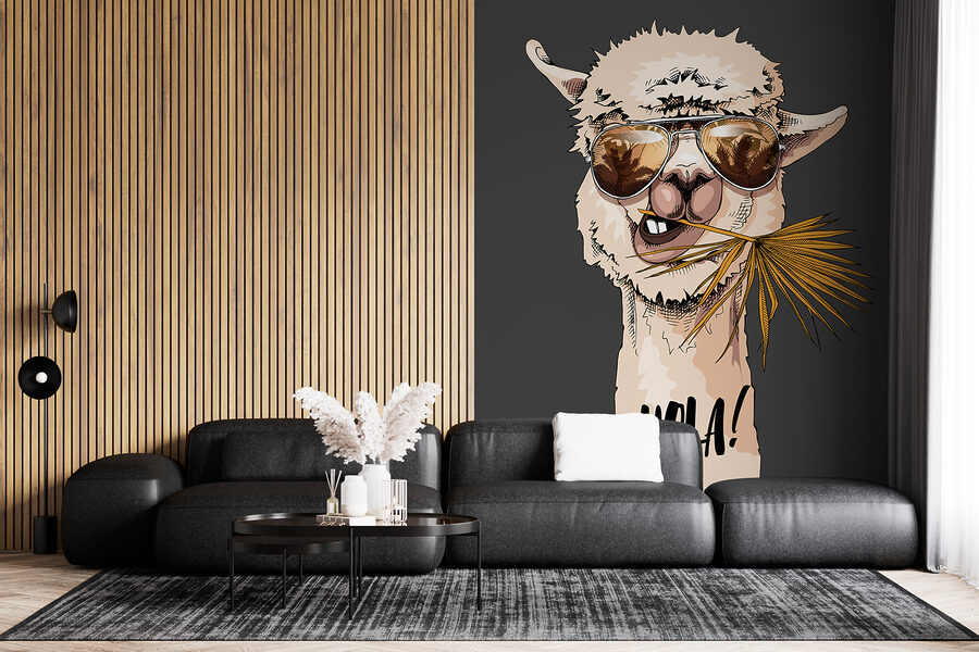 Carta da parati Llama che si rilassa con occhiali da sole. (SKU: u98177v1)