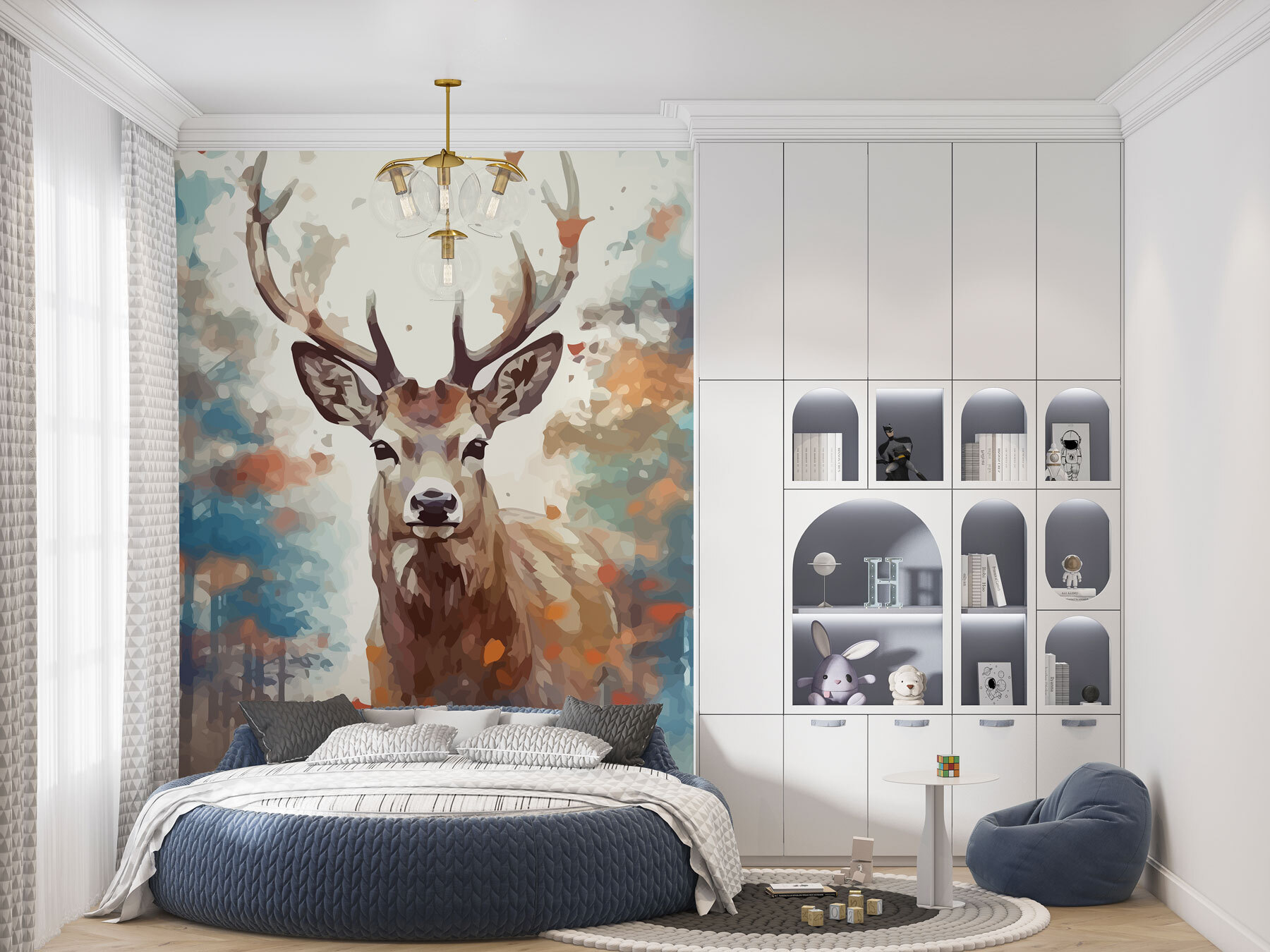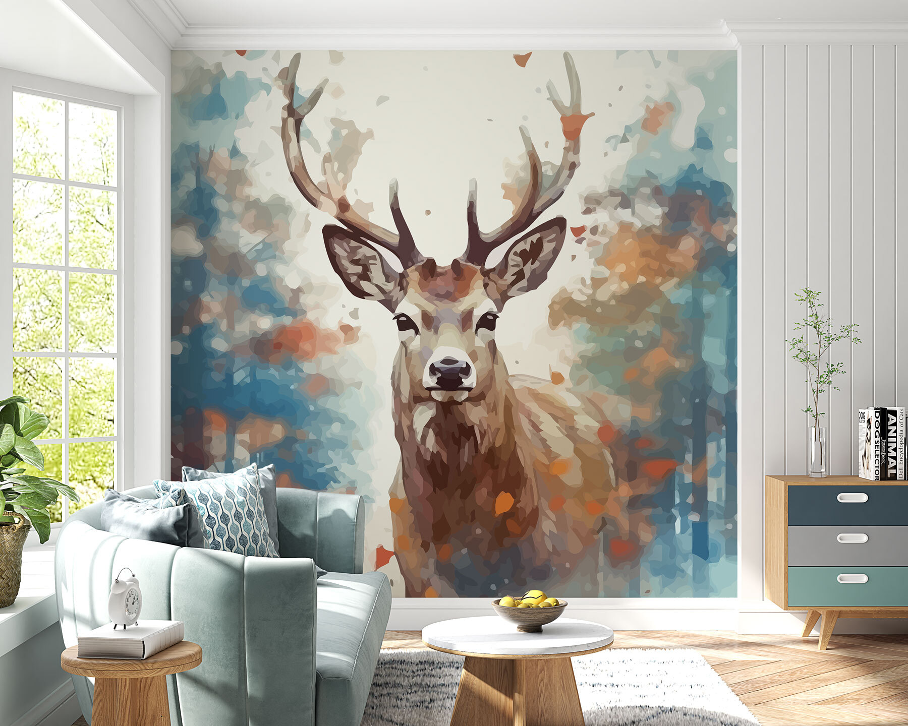 Immaginate di entrare in una stanza e di essere accolti da un maestoso cervo con queste splendide corna. Questo murale è come vedere la natura attraverso una lente colorata e sognante, di quelle che ti fanno venire voglia di fermarti e respirare per un secondo. Perfetto per le camere dei bambini, per gli spazi abitativi o per qualsiasi altro luogo in cui ci si voglia sentire un po’ più legati alla natura. Il mix di toni caldi e freddi? È come se la foresta in autunno avesse deciso di farci visita. Preparatevi a chiedere agli amici: “Dove l’hai preso?”. E poi, sul serio, questo cervo? Ha una bella presenza.