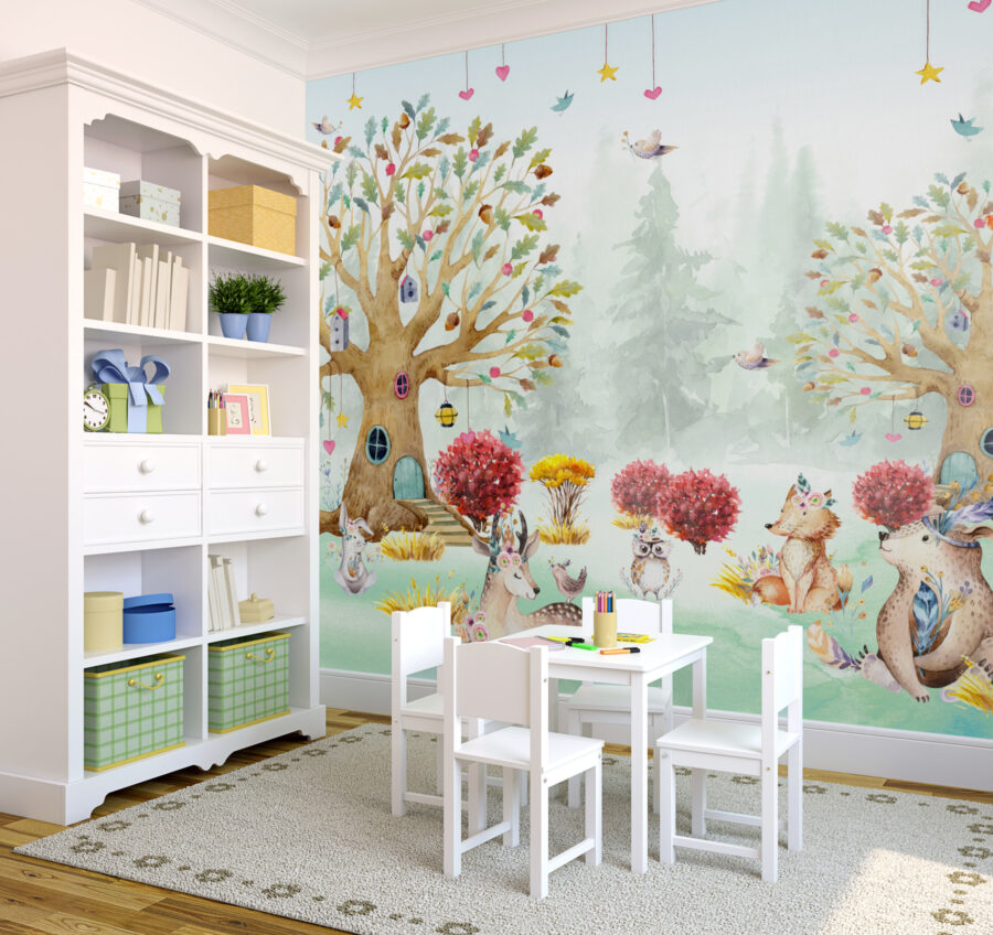 Trasformate la cameretta del vostro bambino in un sognante paese delle fiabe con questo murale “Acquerello di animali in una foresta”. Immaginate gli occhi del vostro piccolo che si illuminano quando scorgono i capricciosi cervi, le volpi e i gufi tra gli alberi, ognuno con i suoi dettagli simpatici e stravaganti. È come entrare in un libro di fiabe! Perfetto per le camerette e le stanze dei bambini, questo murale ha un fascino rilassante e pastello che renderà ancora più incantevoli le storie della buonanotte. Che si tratti di una foresta magica per vostra figlia o di un tranquillo bosco per il vostro bambino, questo murale crea la scena per far correre l’immaginazione e i sogni. I colori tenui dell’acquerello sono delicati e accoglienti e avvolgono lo spazio con calore. Questo murale non è solo una decorazione, è un’avventura che aspetta di svolgersi!