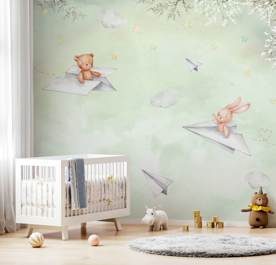 Trasformate uno spazio in una fuga da sogno con questo incantevole murale. Immaginate un mondo in cui adorabili animali si librano tra le nuvole su aerei di carta, inseguendo il dolce sussurro dei sogni. Questo disegno dona un tocco di bizzarria che i bambini (e gli adulti, a dire il vero) adoreranno. Immaginate un bambino che indica l’allegro orso o la giocosa volpe, ridacchiando mentre traccia le traiettorie di quegli aerei in volo. È come un’avventura amichevole proprio nella loro stanza. I colori tenui creano un’atmosfera tranquilla, perfetta per le storie della buonanotte. Date un tocco giocoso a qualsiasi parete e guardate l’immaginazione prendere il volo!