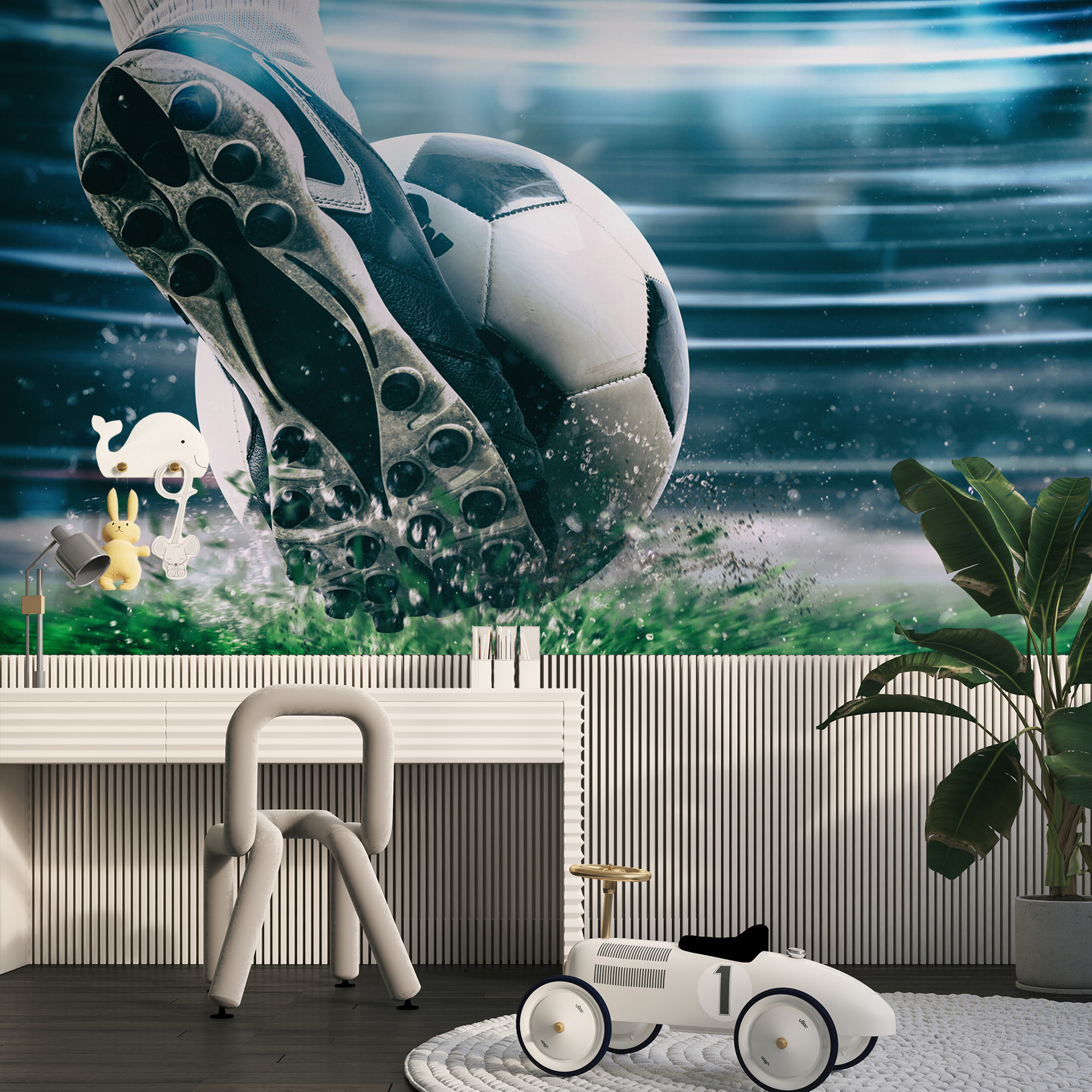 Che siate appassionati di calcio o che vogliate semplicemente abbellire il vostro spazio con qualcosa di fresco e dinamico, questo murale è una scelta fantastica.