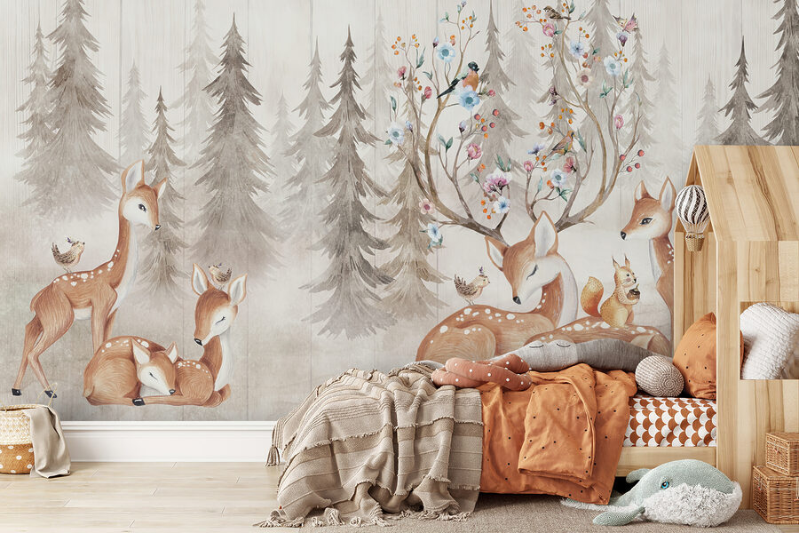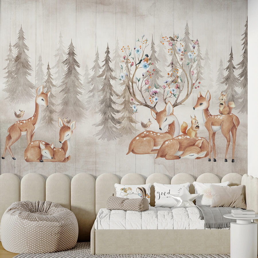 Immaginate di entrare ogni giorno in un bosco da sogno: è davvero incantevole? Questo murale “Uccello seduto su un cervo” sembra un libro di fiabe che prende vita. I delicati cervi e gli affascinanti uccelli creano una scena che si rifà a una foresta accogliente e magica. Perfetto per una cameretta o una stanza dei bambini, trasmette un senso di dolce meraviglia e di pace.