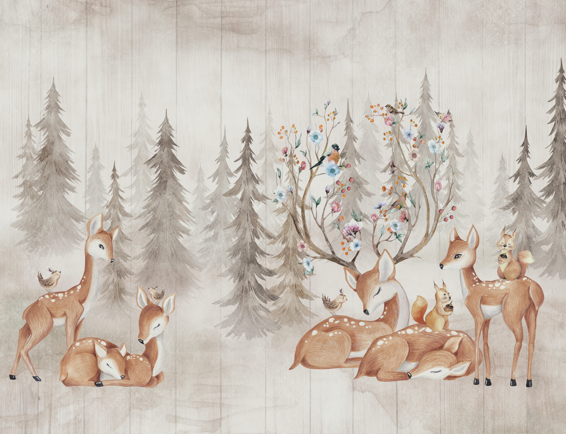 Immaginate di entrare ogni giorno in un bosco da sogno: è davvero incantevole? Questo murale “Uccello seduto su un cervo” sembra un libro di fiabe che prende vita. I delicati cervi e gli affascinanti uccelli creano una scena che si rifà a una foresta accogliente e magica. Perfetto per una cameretta o una stanza dei bambini, trasmette un senso di dolce meraviglia e di pace.