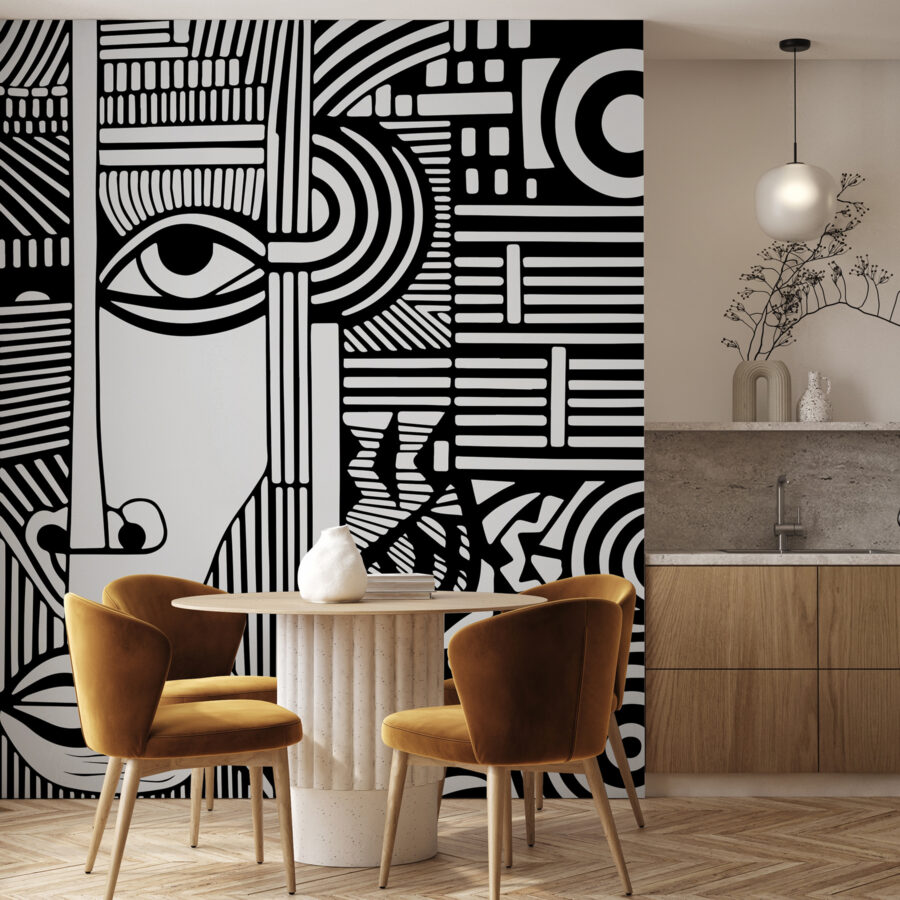 Non si tratta di un semplice murale, ma di un’opera d’arte moderna in grado di trasformare totalmente il vostro spazio. Con le sue linee intricate in bianco e nero che formano un volto astratto, è come avere un capolavoro ispirato a Picasso sulla parete, proprio nel vostro salotto. I motivi audaci e i contrasti sorprendenti lo rendono impossibile da ignorare.