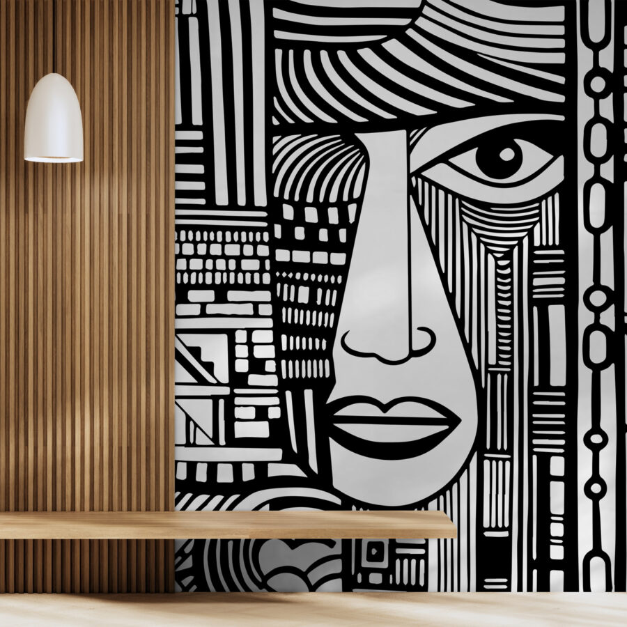 Avete mai desiderato un’arte che vi prenda per le spalle e vi faccia notare? Allora questo murale “Disegno di un volto in bianco e nero” fa al caso vostro. È perfetto per chi ama le carte da parati di design ma desidera anche qualcosa di un po’… audace. Le linee decise e i contrasti sorprendenti attirano l’attenzione, quasi come se il volto stesse conversando con voi. Immaginate di entrare nella vostra stanza dopo una lunga giornata e di sentirvi immediatamente più sofisticati, come se foste entrati in una galleria d’arte moderna. Questo murale aggiunge curiosità e un pizzico di mistero a qualsiasi spazio. E poi è semplicemente bello, no?