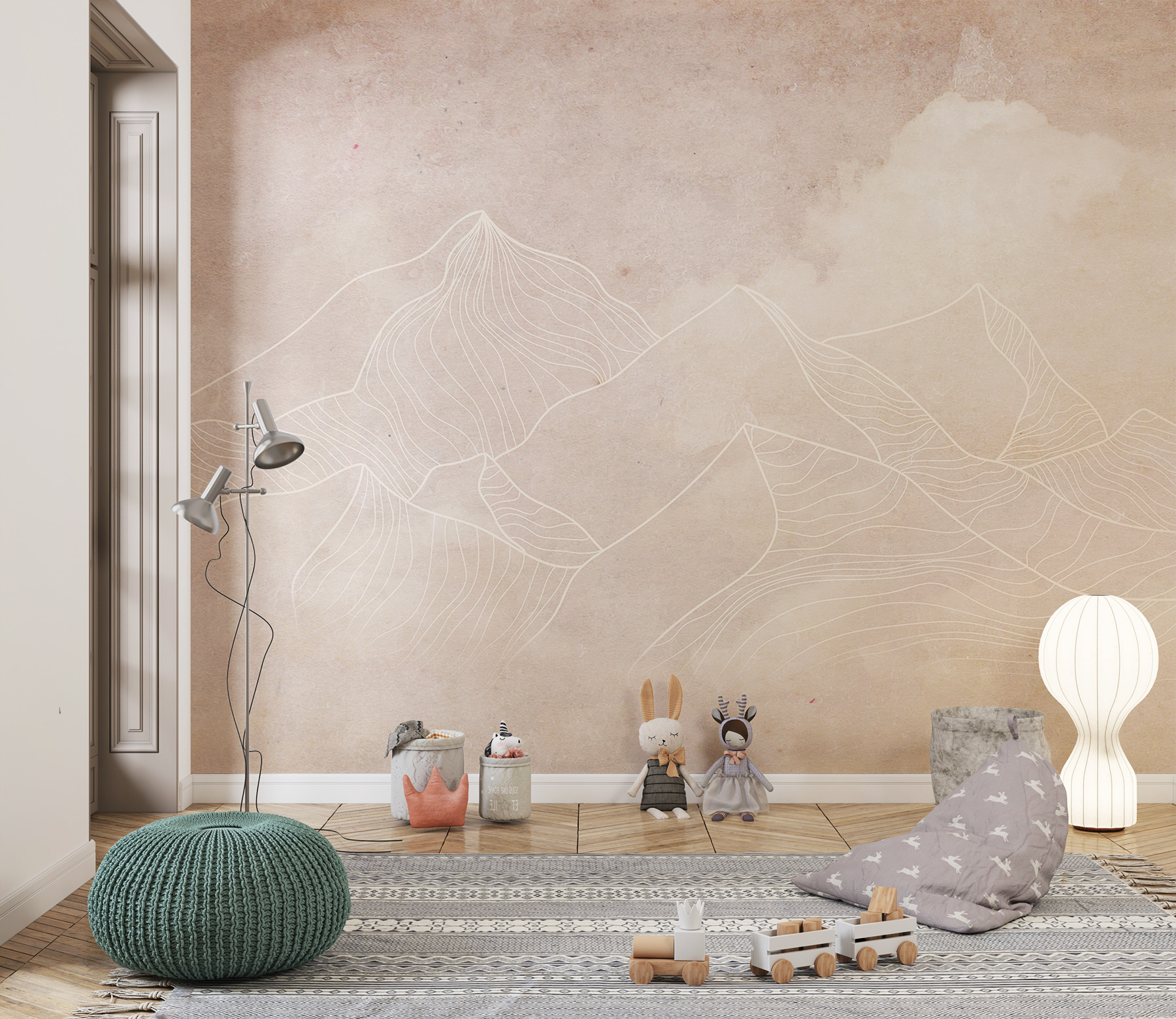 Avete mai pensato di portare la tranquillità delle montagne all’interno dell’abitazione senza dover scalare? Questo murale, giustamente intitolato “Disegno di montagne e nuvole”, potrebbe essere il vostro biglietto d’ingresso per quella vibrazione serena. Il murale presenta disegni delicati, quasi sussurrati, di cime montuose e nuvole soffici e vaporose che trasudano calma. Immaginatelo nel vostro salotto: è come una fuga personale, senza l’attrezzatura e il mal di montagna. I toni tenui sono molto gradevoli alla vista e lo rendono uno sfondo perfetto per leggere o rilassarsi nel fine settimana. Inoltre, è un ottimo spunto di conversazione: “Oh, queste montagne? Solo un po’ di natura sulla mia parete”. Se siete amanti della natura ma preferite vivere le vostre avventure nel comfort di casa, questo potrebbe essere il vostro nuovo oggetto preferito.