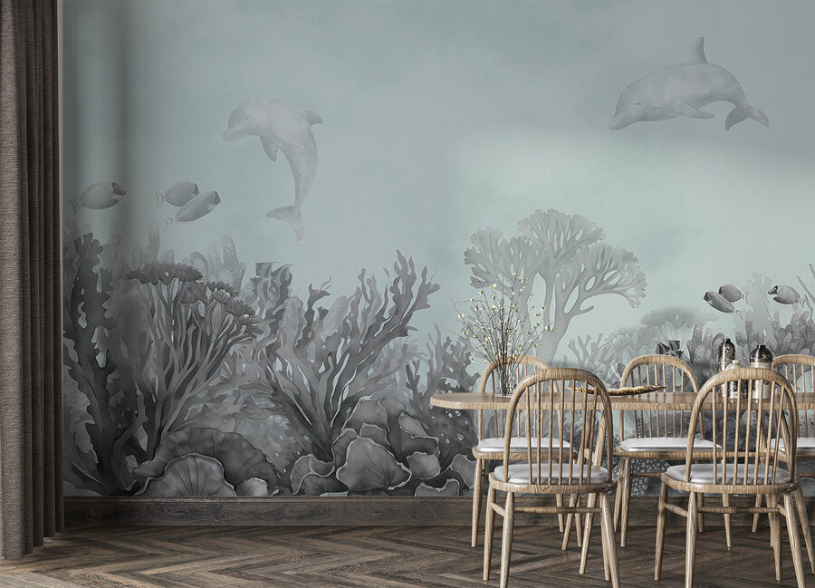 Delfini sulla parete? Sì, grazie! C’è qualcosa di veramente magico in questo murale “Delfino dipinto su una parete”. Immaginate di alzare lo sguardo e di sentirvi sott’acqua senza il fastidio dei capelli bagnati. I delfini giocosi e la vivace barriera corallina portano l’oceano in salotto, in camera da letto o anche nella stanza dei giochi dei bambini. È perfetto per gli amanti degli animali, per gli appassionati di spiaggia e per tutti coloro che sognano una fuga al mare. Aggiunge un tocco di divertimento e stravaganza a qualsiasi spazio, rendendolo vivace e fresco. Inoltre, è ottimo per stimolare l’immaginazione: i bambini lo adoreranno. È come avere un acquario personale che non deve mai essere alimentato!