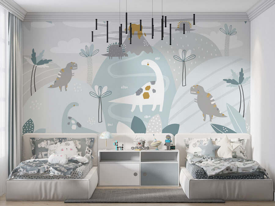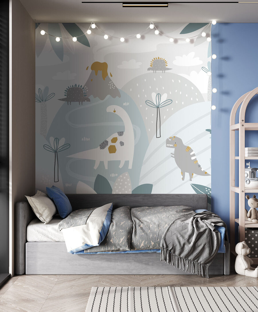 Le tonalità tenui creano un’atmosfera serena, perfetta per i neonati e i bambini. È come se i dinosauri danzassero dolcemente tra le colline e i vulcani, aggiungendo un tocco di allegria preistorica senza sopraffare i sensi. Inoltre, è un prodotto di successo nelle categorie di murales più popolari, quindi sapete di avere un pezzo di tendenza. Che si tratti di avventure da raccontare o di stimolare il gioco immaginativo, questo murale crea la scena: attenzione, i dinosauri potrebbero intrufolarsi nelle storie della buonanotte!