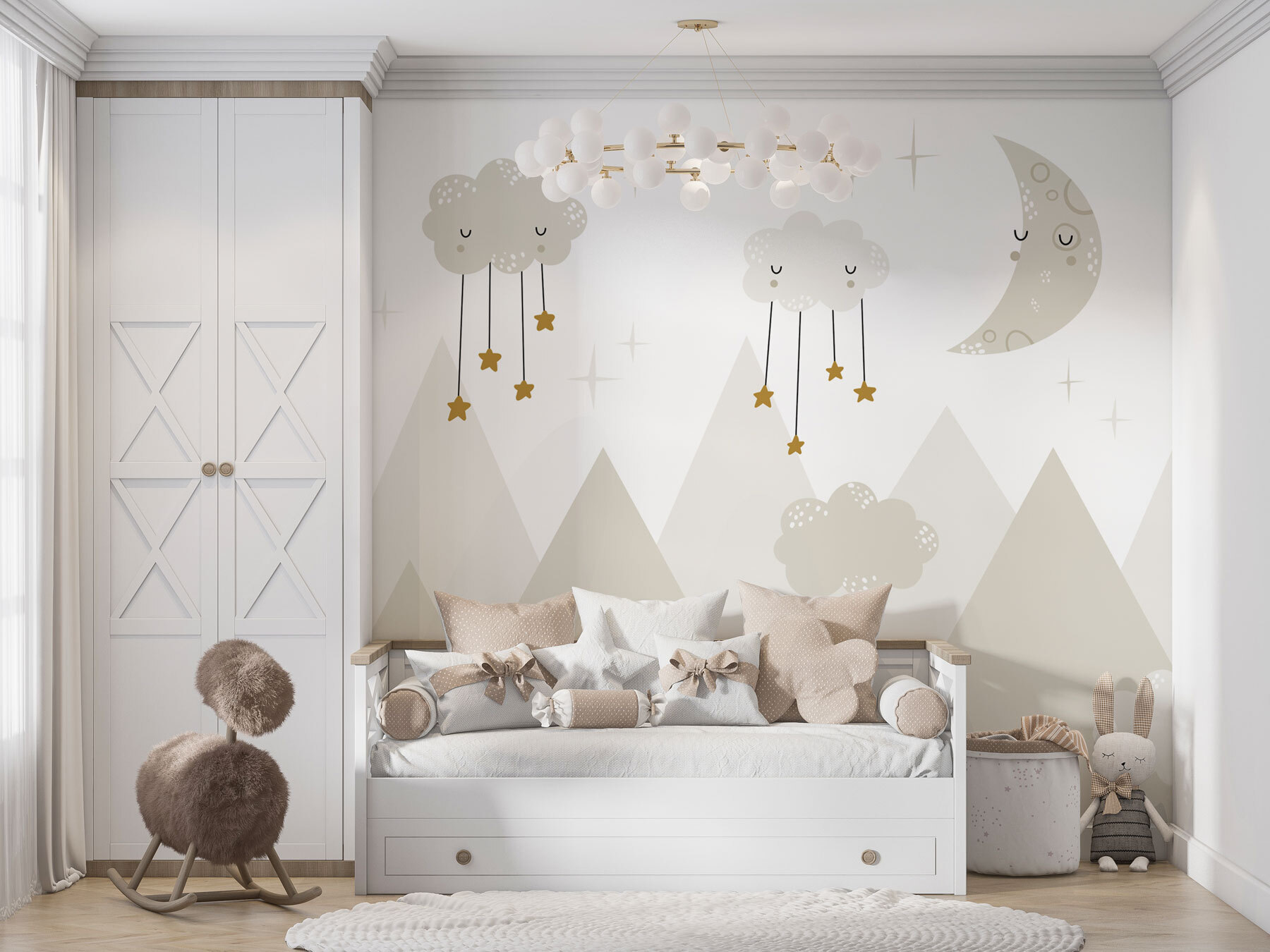 Immaginate questo: un sognante murale del cielo notturno con una luna addormentata e nuvole accoglienti appese a stelle, che risplendono dolcemente sulle cime delle montagne. È come entrare in una stravagante storia della buonanotte! Perfetto per la cameretta dei bambini, questo murale unisce immaginazione e comfort, stimolando la creatività dei più piccoli e creando un’atmosfera rilassante. Pensate a tutti quei sogni d’oro e alle risate della buonanotte. Inoltre, a chi non piacerebbe addormentarsi sotto una scena così deliziosa e rilassante? È più di una semplice decorazione: è una piccola avventura, proprio sulla parete.