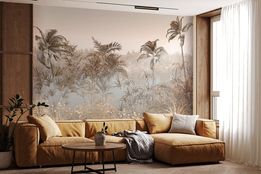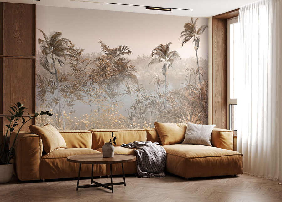 Immaginate di essere trasportati in una serena oasi acquatica ogni volta che entrate nella stanza. Questo è esattamente ciò che si ottiene con il “Murales di palme accanto a uno specchio d’acqua”. È come sorseggiare acqua di cocco con un contorno di tranquilla contemplazione. Perfetto per portare Madre Natura all’interno della casa, questo murale è tutto un susseguirsi di vibrazioni rilassanti: palme che ondeggiano dolcemente, uno specchio d’acqua che riflette il cielo e un ambiente tranquillo che invita a sognare ad occhi aperti. Si tratta di un’opera d’arredo ispirata alla natura e di una piccola fuga per i sensi. Immaginate di entrare in uno spazio in cui vi sentite sempre freschi e leggeri, anche nelle giornate più stressanti. E se strizzate gli occhi, potreste sentire il sussurro delle foglie di palma e la brezza fresca.