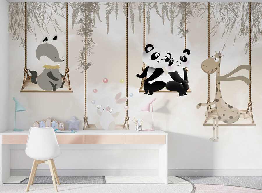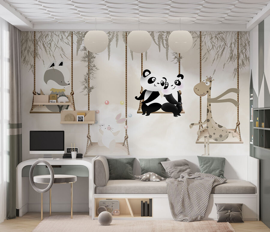 Non riuscite a trovare il tocco perfetto per la stanza del vostro piccolo? Immaginatevi due adorabili panda che dondolano dolcemente l’uno accanto all’altro, dando un’atmosfera accogliente e stravagante allo spazio. Questo murale, “Coppia di panda seduti su un’altalena”, ha tutte le carte in regola: carino, affascinante e anche un po’ commovente. Immaginate di far cadere il vostro bambino nella sua culla o nel suo lettino, dove si addormenterà sognando avventure nel bosco con i suoi nuovi amici panda. Non si tratta solo di una decorazione, ma di una mini fuga in un mondo di coccole e divertimento. E funziona benissimo anche nella stanza dei giochi! Preparatevi a qualche “aww” in più al momento della nanna.