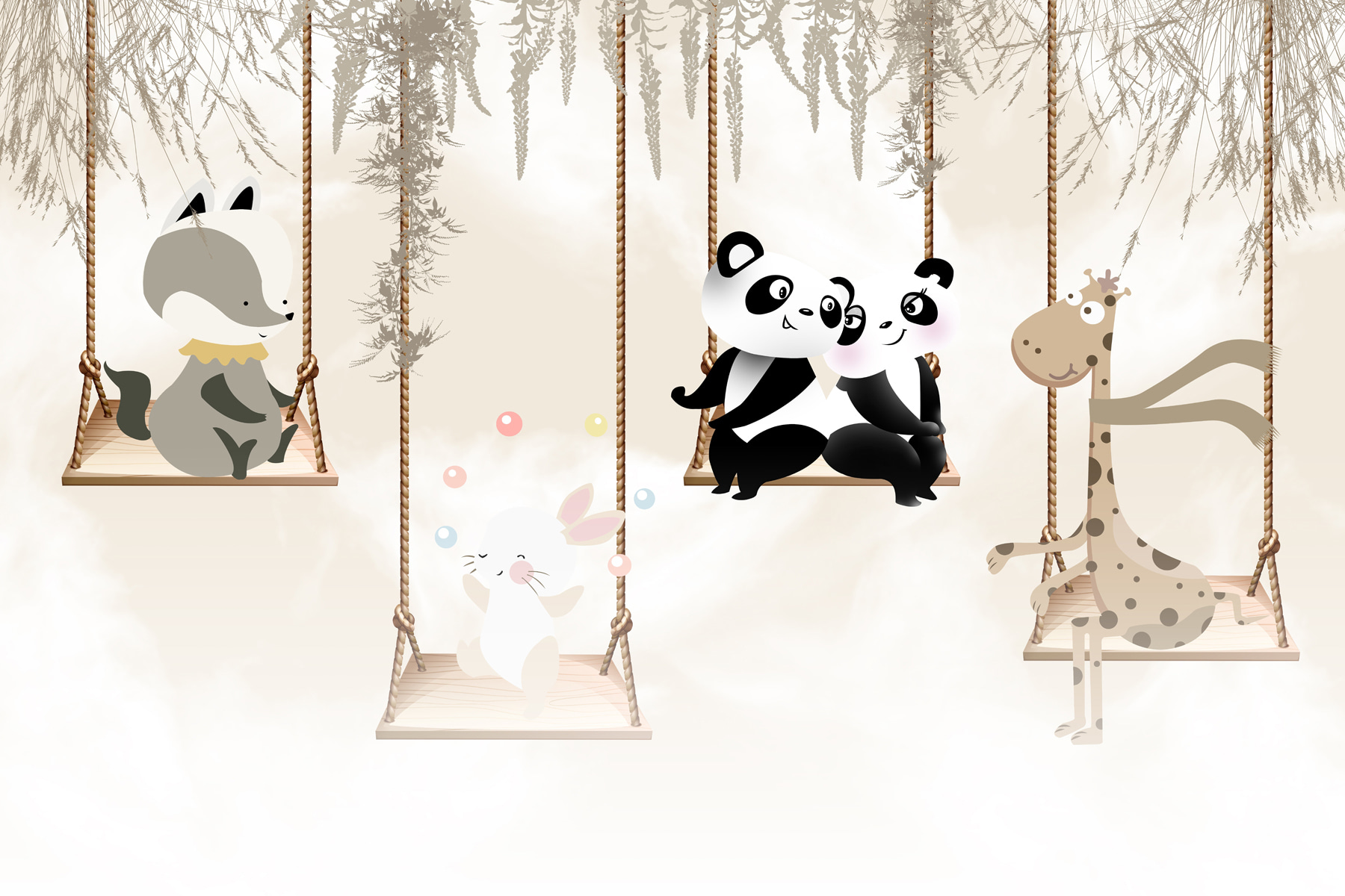Non riuscite a trovare il tocco perfetto per la stanza del vostro piccolo? Immaginatevi due adorabili panda che dondolano dolcemente l’uno accanto all’altro, dando un’atmosfera accogliente e stravagante allo spazio. Questo murale, “Coppia di panda seduti su un’altalena”, ha tutte le carte in regola: carino, affascinante e anche un po’ commovente. Immaginate di far cadere il vostro bambino nella sua culla o nel suo lettino, dove si addormenterà sognando avventure nel bosco con i suoi nuovi amici panda. Non si tratta solo di una decorazione, ma di una mini fuga in un mondo di coccole e divertimento. E funziona benissimo anche nella stanza dei giochi! Preparatevi a qualche “aww” in più al momento della nanna.