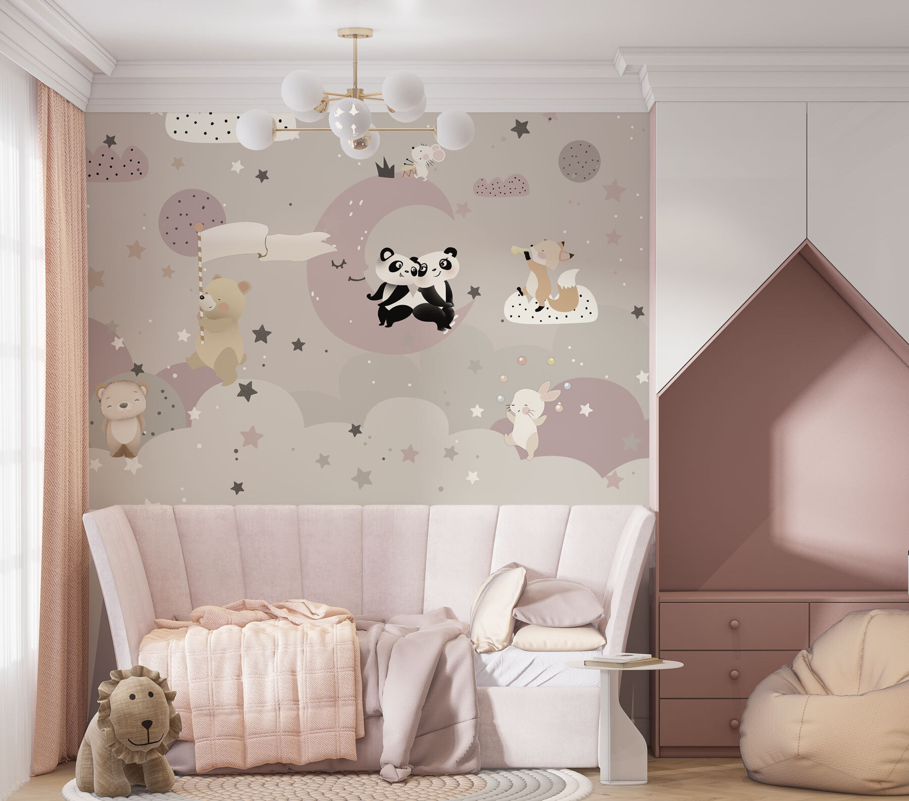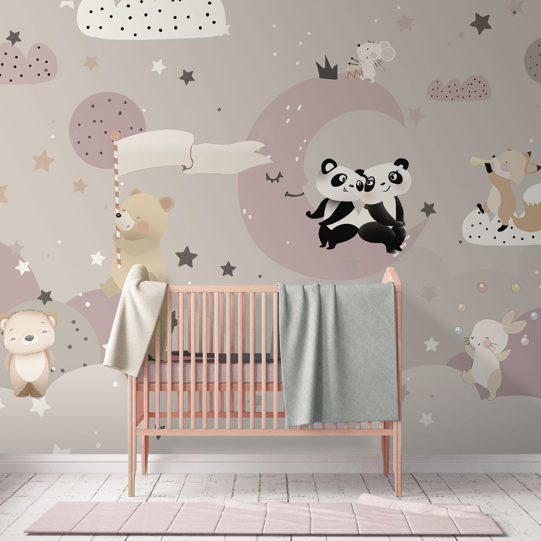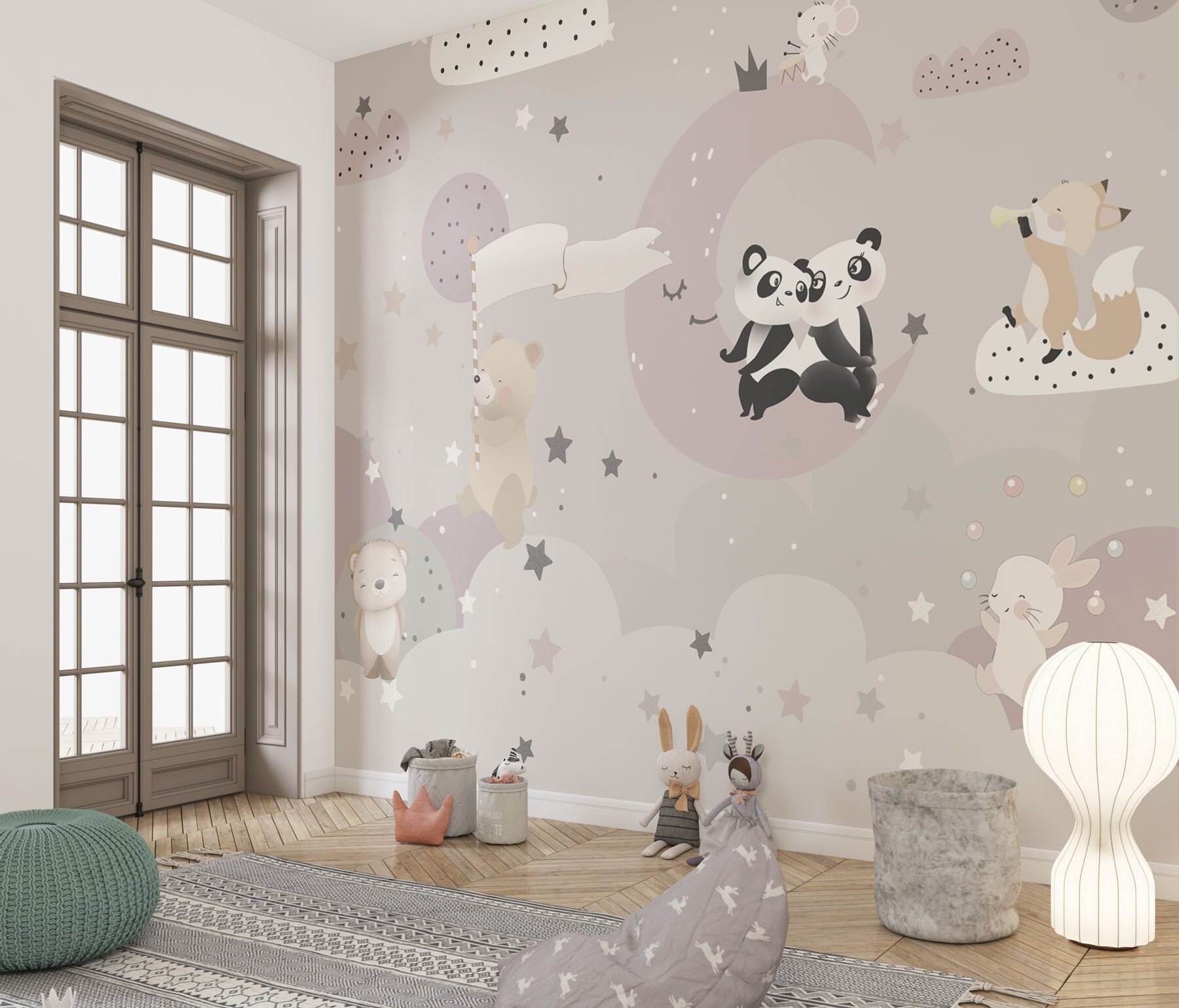 Volete aggiungere un tocco di fantasia alla stanza del vostro bambino? Questo “Murales di un orso” fa al caso vostro! Immaginate un accogliente cielo notturno, punteggiato di stelle pastello e adorabili amici orsi: un fascino immediato. Perfetto per le camerette e le stanze da gioco, questo murale dai toni tenui e dai personaggi deliziosi crea un’atmosfera sognante e rilassante. Immaginate il vostro bambino che si sveglia con un dolce orso che sventola una bandiera, che ridacchia con i panda o che scorge una volpe che suona una melodia. È una parete che racconta una storia, che invita all’immaginazione e a sogni giocosi. Inoltre, è un divertente spunto di conversazione: i vostri amici vi chiederanno dove avete trovato un pezzo così delizioso. Credetemi, non è solo un murale, ma un’intera atmosfera per lo spazio del vostro piccolo.