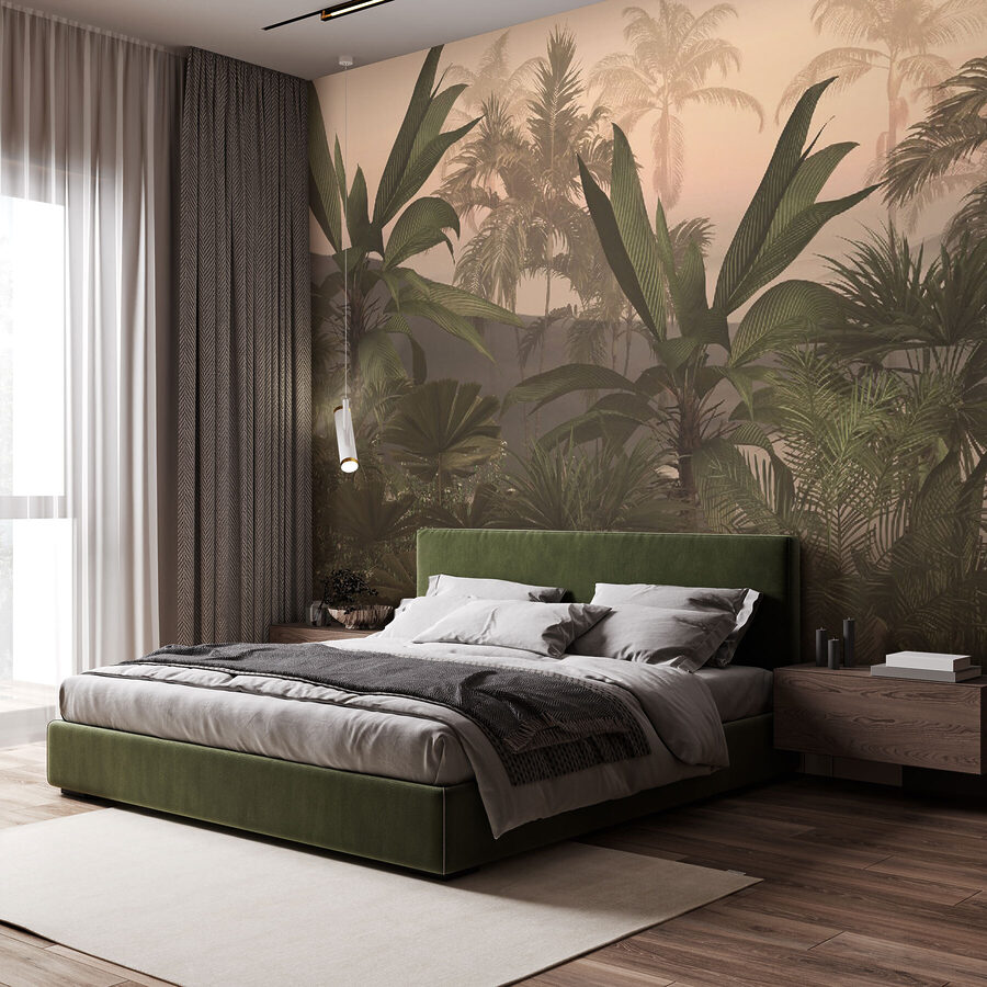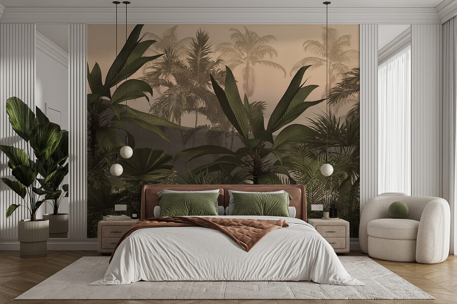 Lo sfondo morbido e vaporoso, mescolato al verde vibrante delle foglie, fa sentire ogni spazio vivo e rinfrescato. Che si tratti del soggiorno, della camera da letto o dell’ufficio, vi farà sentire come se foste in costante fuga. E la parte migliore? Niente insetti! Solo una tranquillità infinita e un tocco di fascino esotico direttamente sulle vostre pareti.