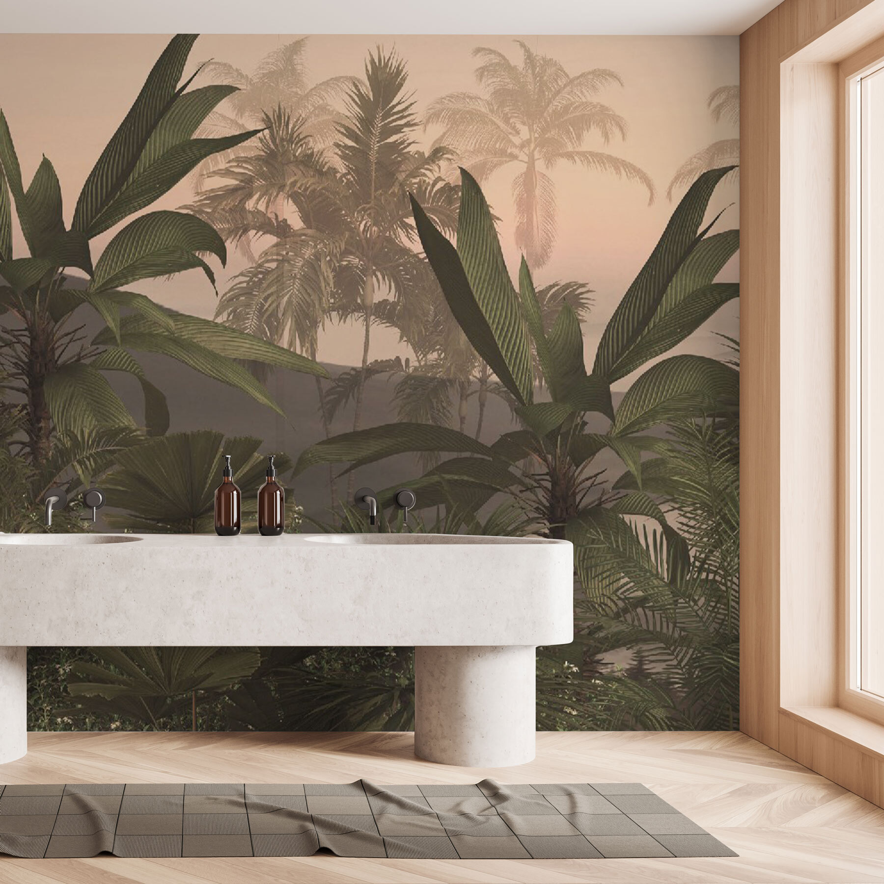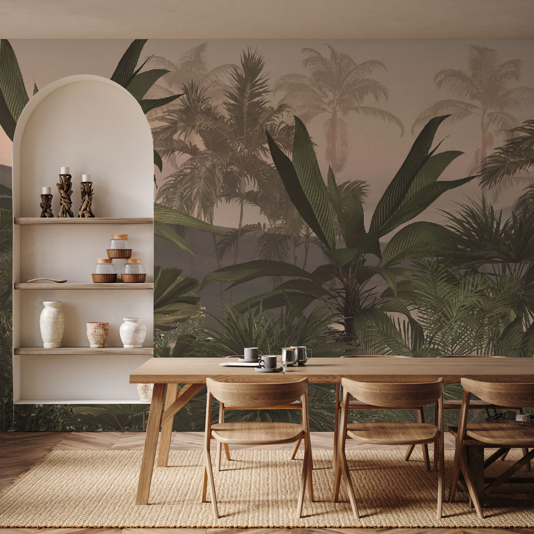 Perdetevi nella natura, sentite la calma e lasciate che questo murale sia la vostra finestra su un paradiso tropicale.