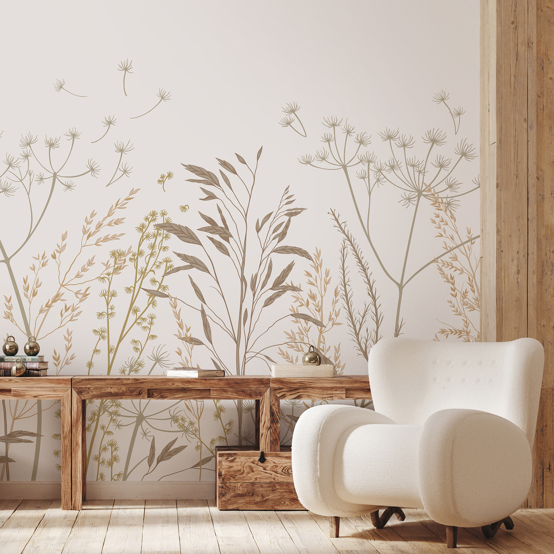 Immaginate di svegliarvi ogni mattina con un campo sereno di delicate foglie marroni che ondeggiano dolcemente su uno sfondo bianco. Questo è ciò che si ottiene con questo murale. Perfetto per gli amanti della natura e per chi desidera una boccata d’aria fresca nella propria casa. Davvero, è come avere un pezzetto dei grandi spazi aperti proprio nel vostro salotto, senza insetti!