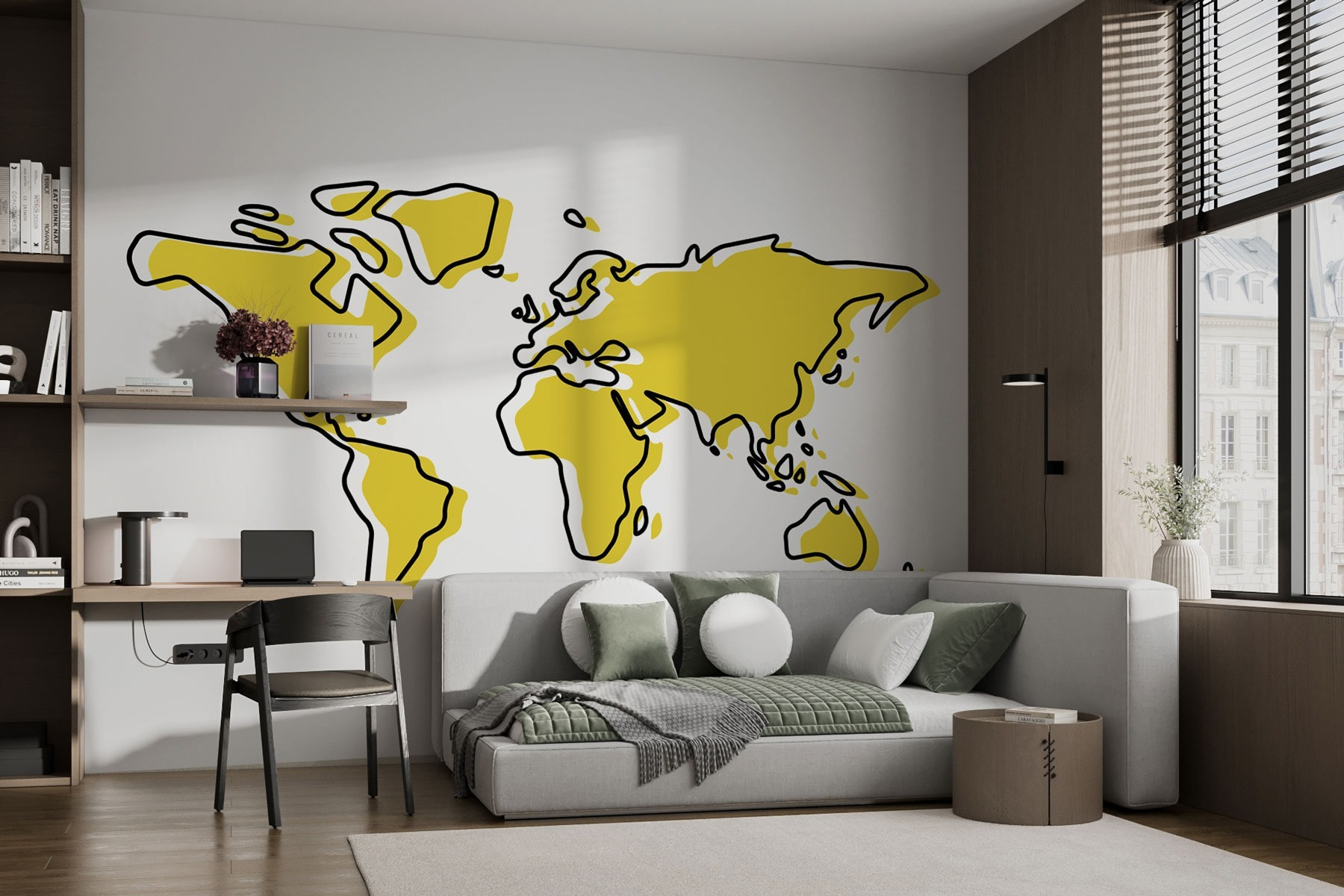 Un tocco di divertimento e di educazione, non è vero? Perfetto per stimolare la curiosità delle giovani menti. E poi potrebbe anche ispirare spontanei quiz di geografia: chi avrebbe mai detto che l’apprendimento potesse essere così elegante? Che si tratti di decorare la stanza di un bambino o di aggiungere un tocco di stile a uno spazio abitativo, questo murale è un perfetto spunto di conversazione.