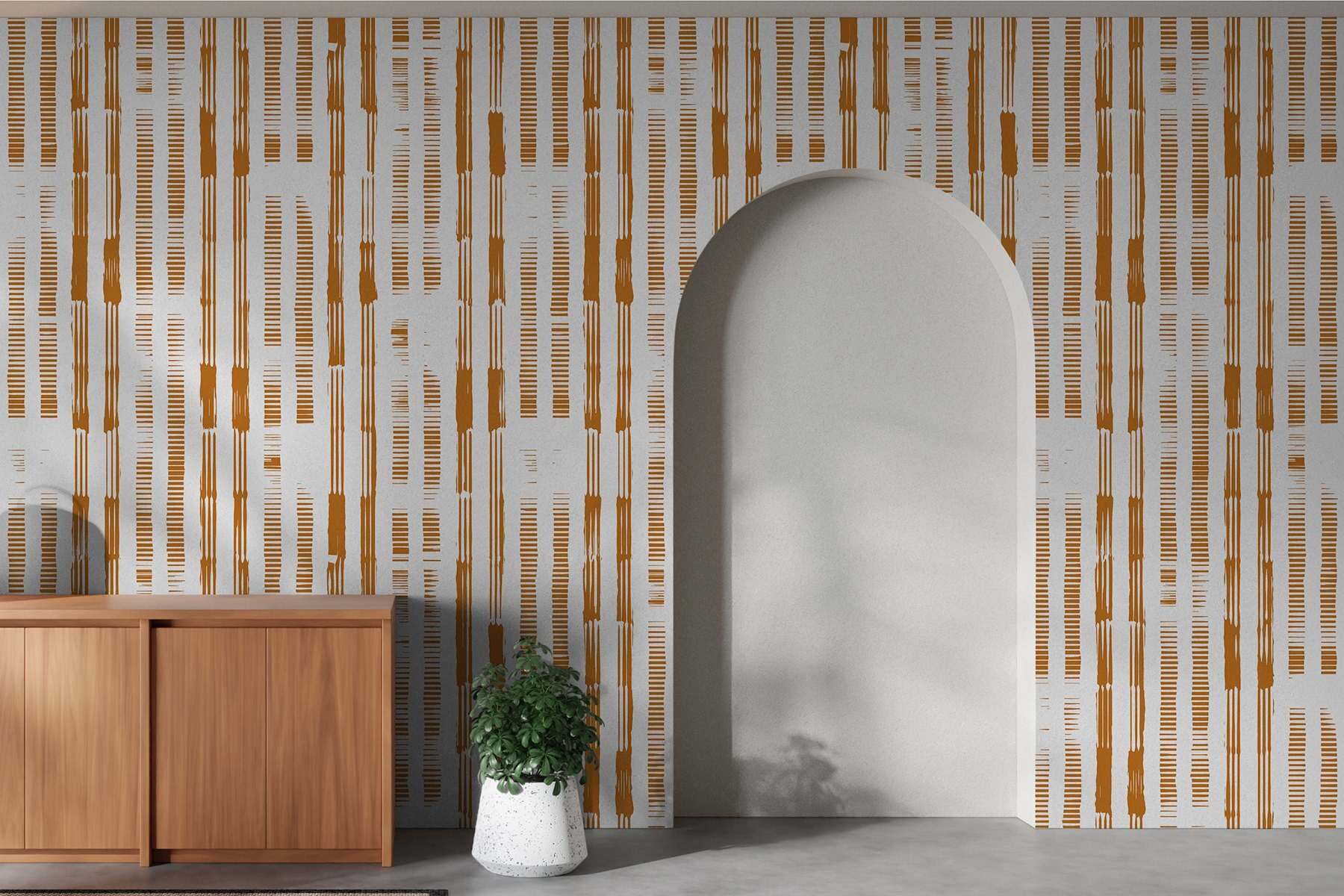 Date un’occhiata a questo accattivante murale con un motivo a strisce verticali e spazi vuoti intenzionali, perfetto per aggiungere un tocco di modernità al vostro spazio! Si trova nel punto giusto tra i disegni astratti e quelli a strisce, il che lo rende un’ottima scelta per chi vuole qualcosa di unico ma versatile. Immaginatelo in salotto o in ufficio: le linee pulite e il motivo organizzato sono giocosi ma sofisticati. Inoltre, i toni arancioni della terra conferiscono un’atmosfera calda e accogliente che è semplicemente invitante.