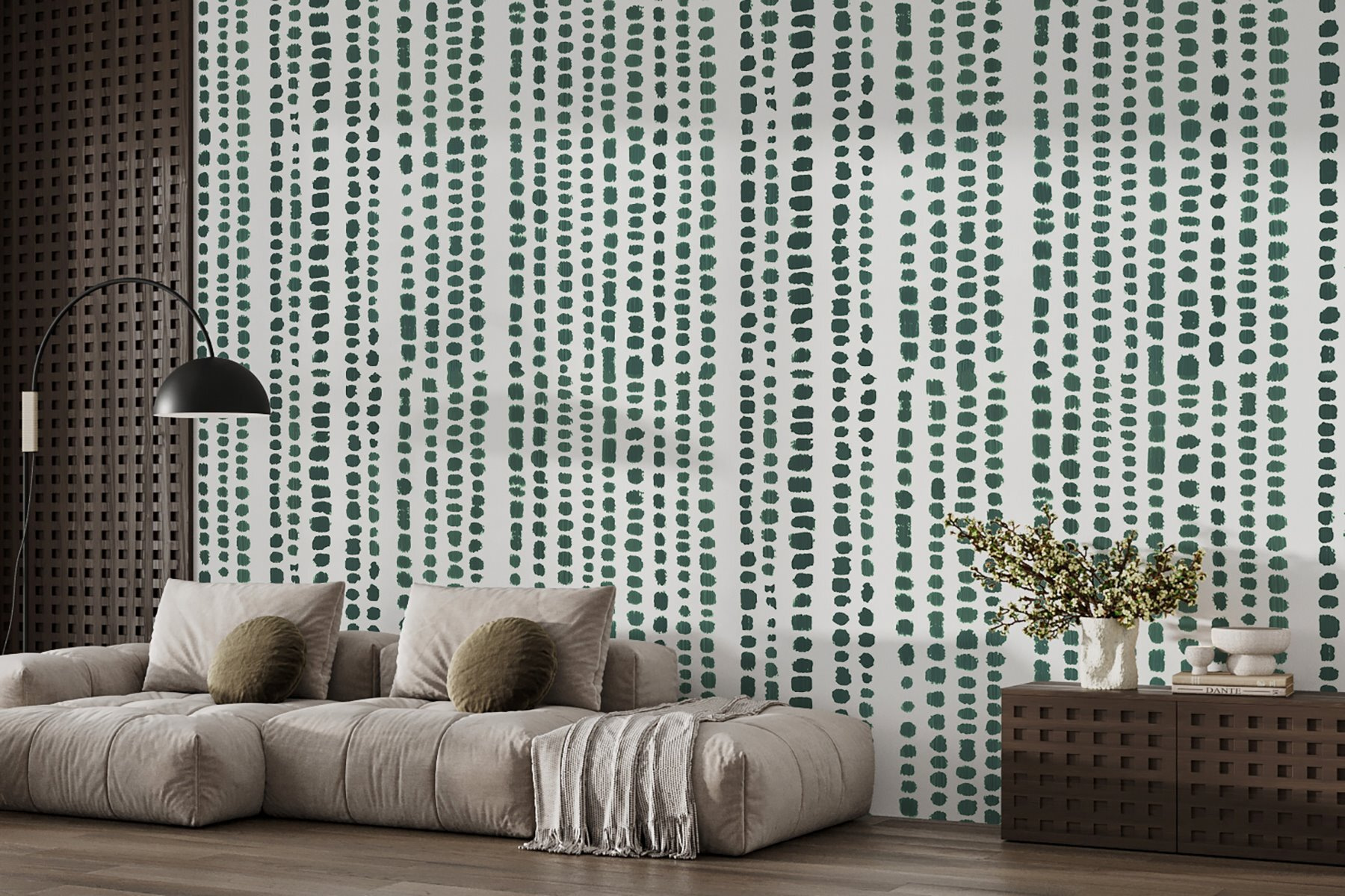 Avete presente quei giorni in cui volete dare una rinfrescata a una stanza, ma non volete qualcosa di troppo forte o folle? Questo murale “Green and White Pattern” potrebbe fare al caso vostro. Con i suoi puntini e le sue strisce verdi, il murales ha un’atmosfera rilassata, come un codice a barre ispirato alla natura, stravagante ma meravigliosamente rilassante. Immaginate di svegliarvi ogni mattina con questo delizioso mix di geometria semplice e tinte naturali. È come avere un piccolo pezzo di calma proprio sulla parete, perfetto per creare uno spazio naturalmente accogliente. È particolarmente invitante per un angolo di lettura o per uno sfondo da ufficio. È un mix equilibrato di interesse visivo senza sopraffare i sensi. E il ritmo delicato di quei punti è quasi meditativo.