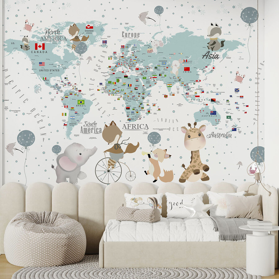 Trasformate la stanza di un bambino in una zona di avventura giocosa con il “Murales Mappa del mondo con animali”. Questo delizioso murale non è solo una bella immagine, ma un viaggio stravagante attraverso i continenti, cosparso di adorabili animali che si divertono in ogni modo. Immaginate un elefante che va in bicicletta nel cuore del Sud America o una giraffa che posa orgogliosa in Australia. È perfetto per stimolare la curiosità e il senso di meraviglia. Che si tratti della prima stanza di un piccolo esploratore o di un accogliente angolo lettura, questo murale dona calore e fascino a qualsiasi spazio. Inoltre, a chi non piacerebbe avere un promemoria quotidiano del lato selvaggio del mondo?
