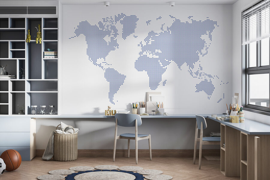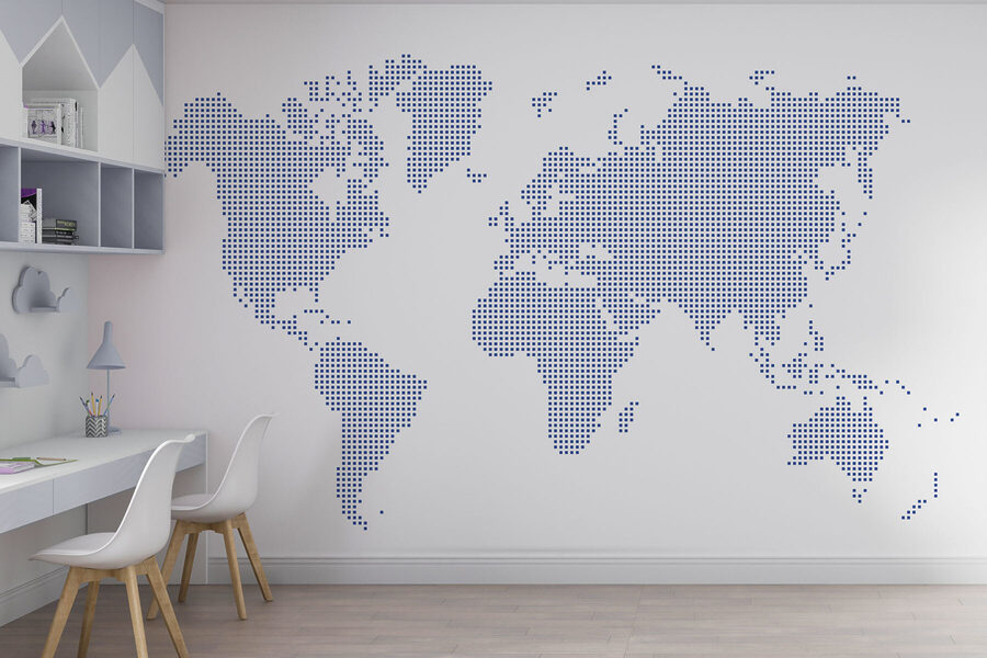 State pensando di ravvivare il vostro spazio? Allora date un’occhiata a questo: uno splendido murale chiamato “Map of the World”. Si tratta di una rivisitazione artistica e di classe della tipica cartina geografica, con una serie di piccoli punti che creano i continenti. Questa bellezza si trova nelle categorie “Murales con mappe della Terra” e “Murales popolari”, ed è facile capire perché. Immaginate che si estenda lungo la parete del vostro soggiorno: sicuramente un argomento di conversazione! Immaginate gli ospiti che si meravigliano della vostra atmosfera globale e che pianificano casualmente la loro prossima avventura. Inoltre, c’è qualcosa di stranamente appagante nel vedere il mondo disposto in questo modo. Aggiungere questo murale al vostro spazio? È come invitare il mondo intero a casa vostra.