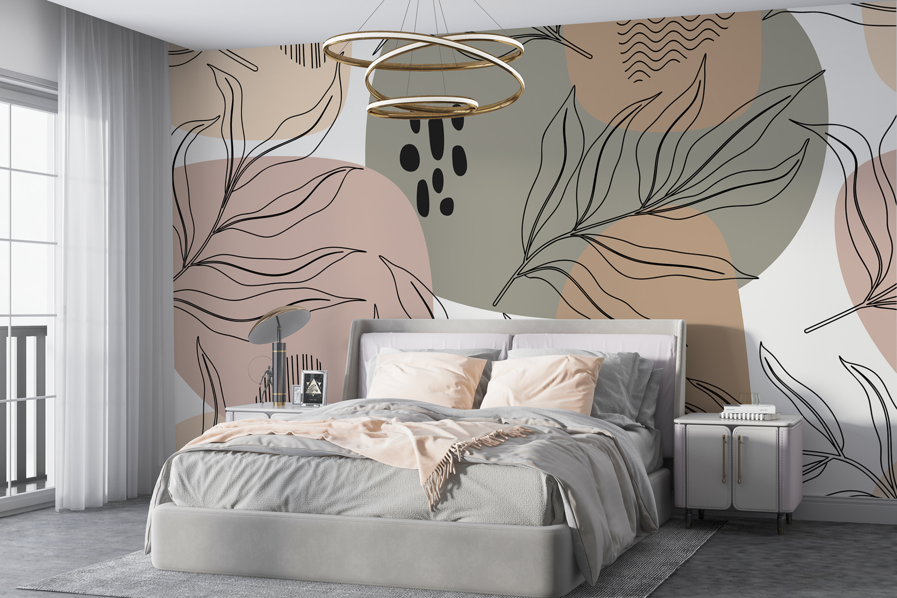 Immaginate di rilassarvi con una tazza di tè, immersi nell’atmosfera serena di questo murale. Quelle linee delicate e ondulate sembrano quasi meditative, non è vero? E il motivo ispirato alla natura dà un sottile cenno ai grandi spazi aperti, pur rimanendo super chic. È un elemento di conversazione e, in qualche modo, ancora rilassante. Potreste ritrovarvi a sognare ad occhi aperti di fluttuare tra le nuvole o a fare scarabocchi in un pomeriggio di sole.