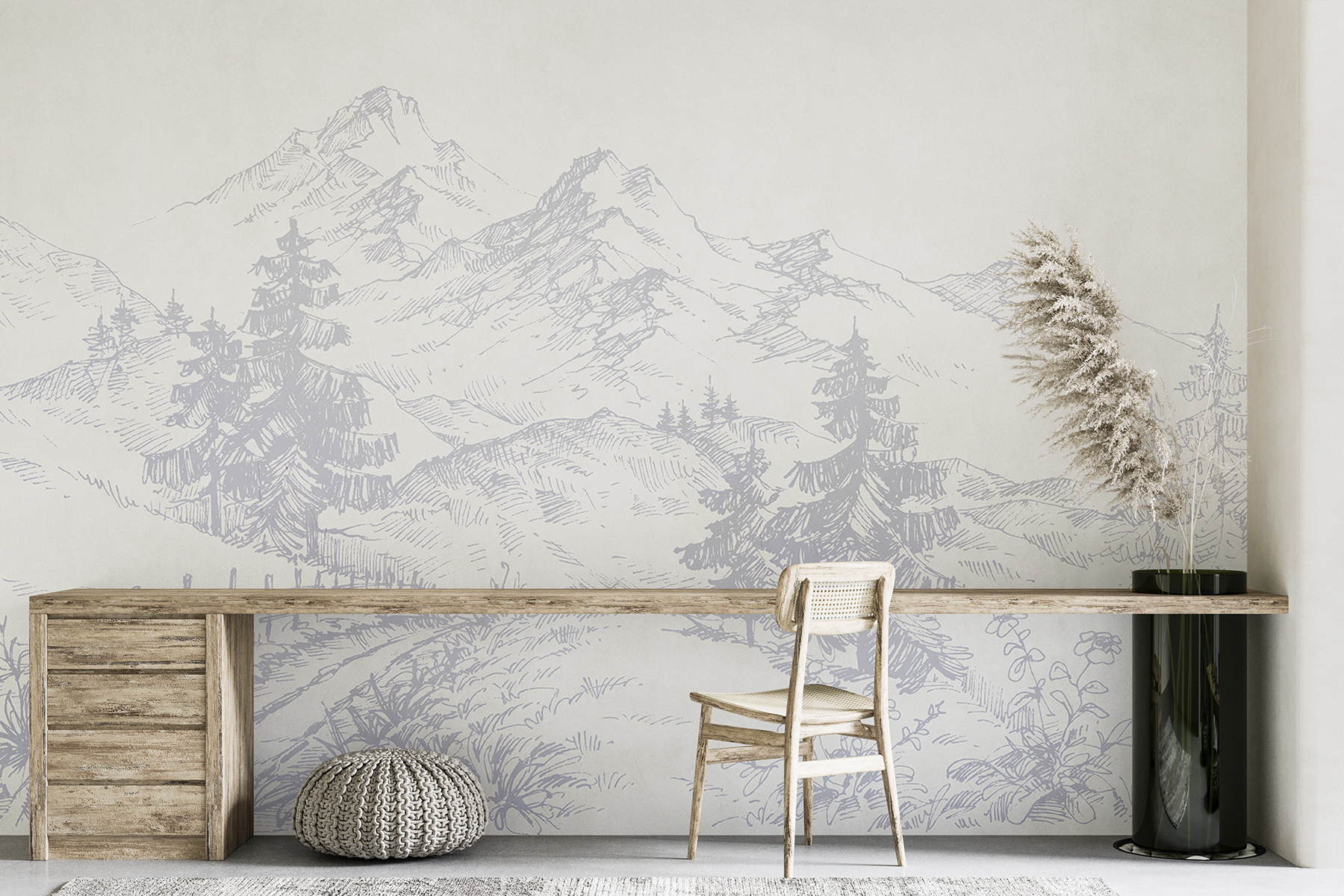 Che ne dite di portare un tocco di arte della natura nel vostro spazio abitativo con questo murale di una scena vegetale disegnata a mano? Immaginate di sentirvi immediatamente trasportati in un sereno sentiero di montagna con alberi imponenti e dolci colline. È come avere una vista che cambia il vostro umore ogni volta che la guardate. Il sottile stile a matita conferisce un fascino senza tempo, un po’ come quei vecchi libri di fiabe che non riuscivate a mettere da parte da bambini.