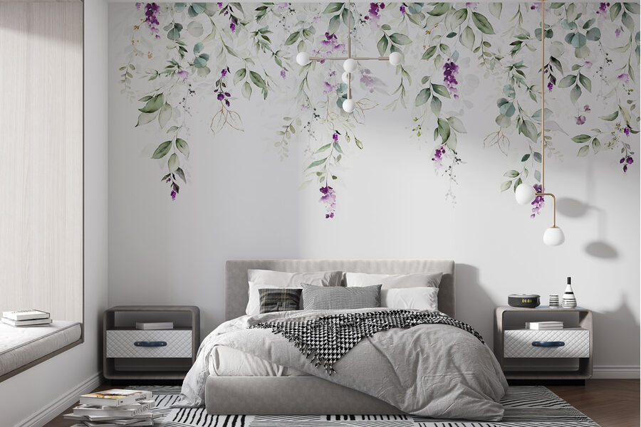 Volete ravvivare il vostro spazio con un tocco di natura? Date un’occhiata a questo incantevole murale di fiori viola su uno sfondo bianco immacolato. Ha un’atmosfera morbida e acquerellata che ti fa sentire come se fossi in un giardino tranquillo. Immaginate di svegliarvi ogni giorno con questa bella immagine: un toccasana per l’umore, vero? I toni del viola attirano l’attenzione senza essere invadenti. Perfetto per qualsiasi stanza che abbia bisogno di un po’ di vita e di colore, questo murale si abbina perfettamente a qualsiasi tipo di arredamento. È ideale per aggiungere un tocco botanico alla vostra casa. Semplicemente da sogno!