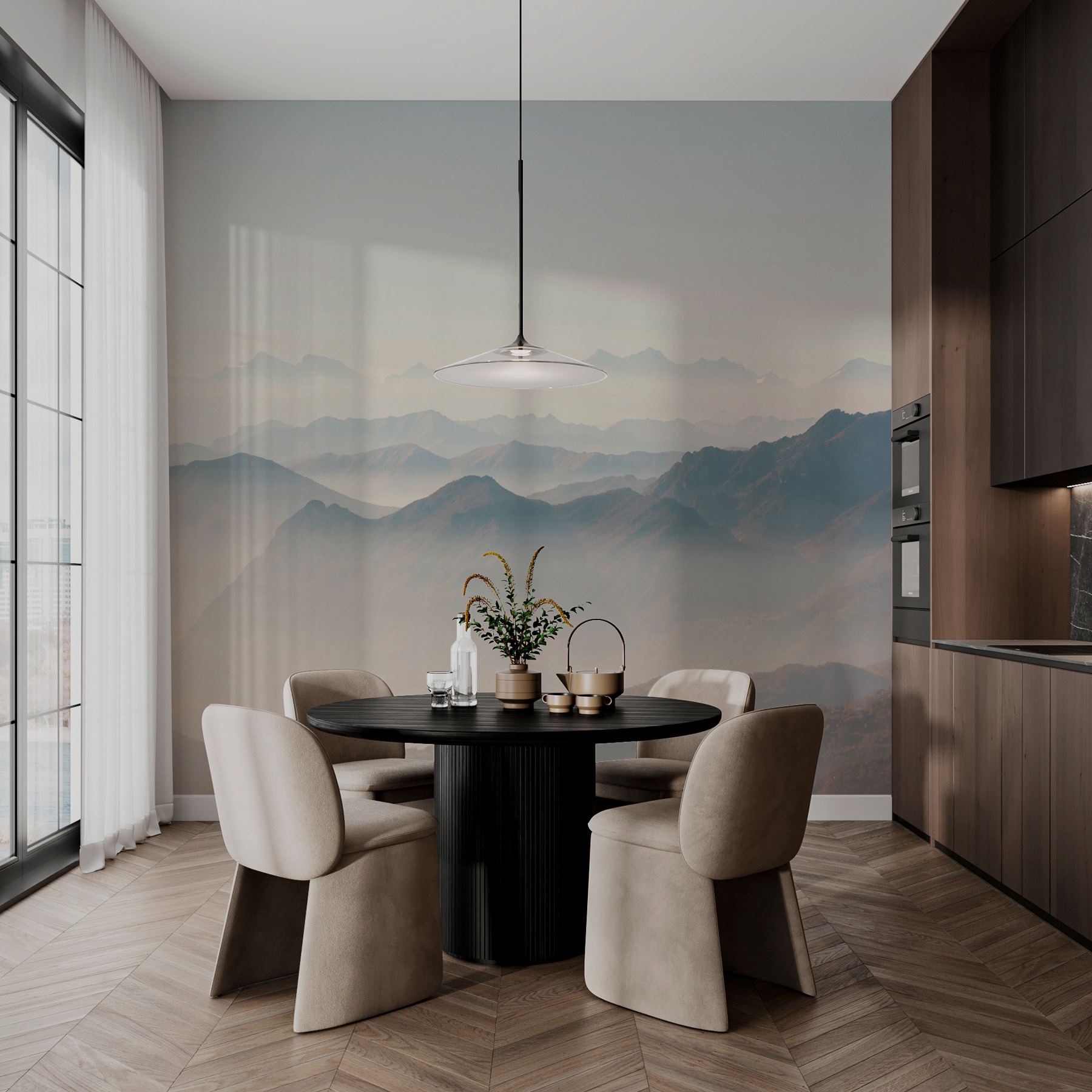 Trasformate qualsiasi spazio in una fuga serena con questo splendido murale di una catena montuosa avvolta nella nebbia. Immaginate di sorseggiare un caffè in una pigra domenica mattina guardando queste cime morbide e ondulate. È come una mini-vacanza per le pareti. I colori tenui evocano un senso di calma, perfetto per un salotto accogliente o una tranquilla camera da letto. Immaginate questo murale che crea uno sfondo che fa sognare l’aria fresca e le escursioni in montagna, senza bisogno di scarponi da trekking. È un arredo che racconta una storia, portando la natura all’interno con un sussurro di avventura.