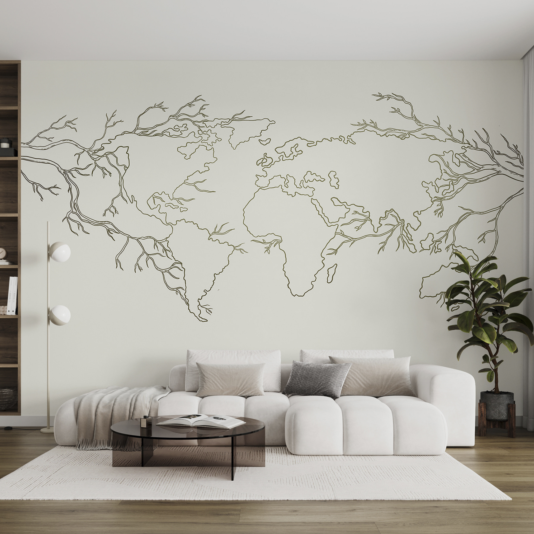 “Carta da parati Map of the World” non è la solita carta da parati. Immaginate di dare un tocco di vagabondaggio alla vostra stanza con questo design unico, caratterizzato da delicati rami che formano i continenti. Perfetto per la camera dei bambini o per il vostro angolo speciale, è come avere una piccola avventura sulla parete, senza il jet lag.