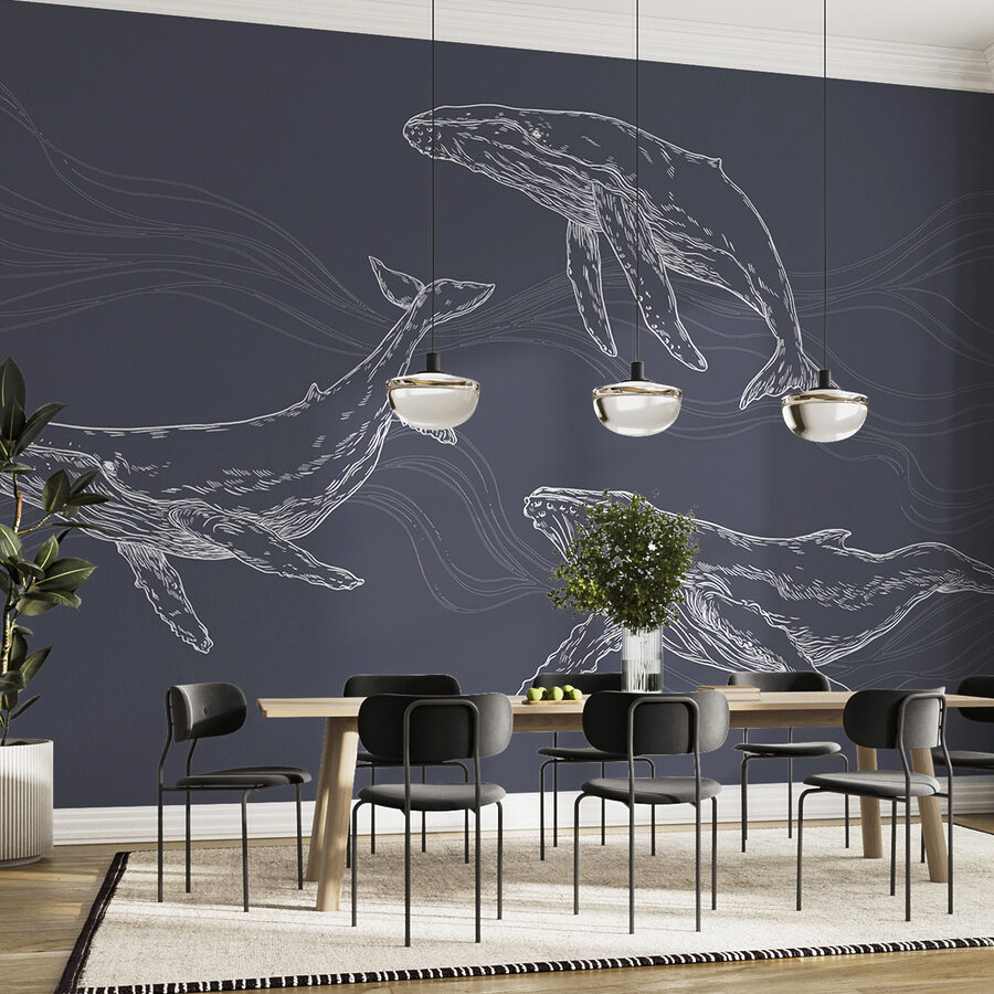 Immaginate di entrare in una stanza e di essere accolti da un maestoso gruppo di balene che nuotano con grazia sulla parete. Questa è esattamente l’atmosfera che trasmette questo murale: rilassante, ma anche un po’ avventurosa. Ideale per qualsiasi spazio che abbia bisogno di un po’ di magia dell’oceano. Le balene non si limitano a nuotare, ma planano. Questo murale cattura questa eleganza, rendendo vive le vostre pareti. Perfetto per una stanza a tema spiaggia o semplicemente per aggiungere un tocco di mare dove meno te lo aspetti. Inoltre, quelle linee e quelle onde delicate… pura beatitudine artistica! Immergetevi e lasciate che queste meravigliose creature trasformino il vostro spazio in un paradiso sottomarino.