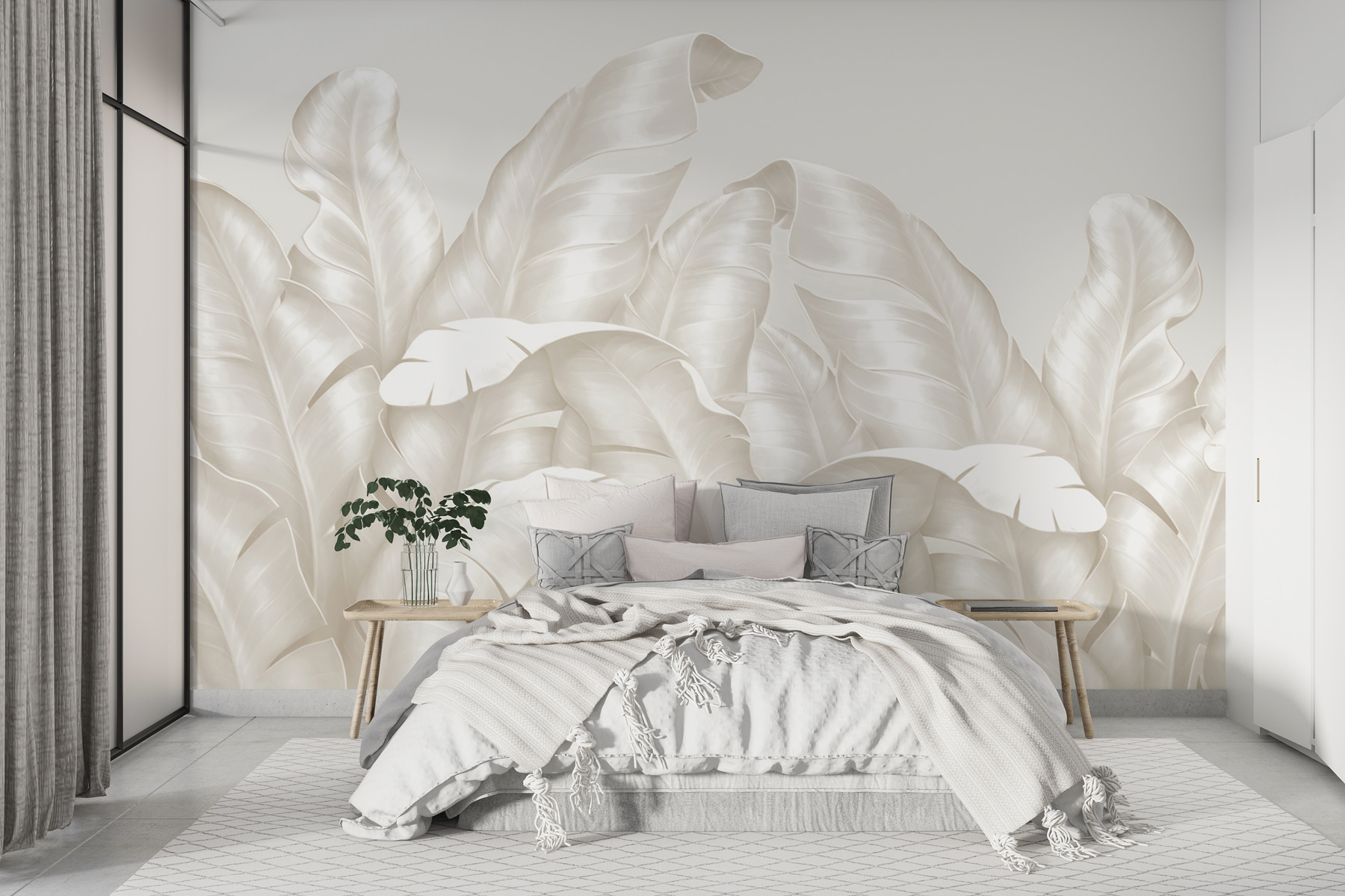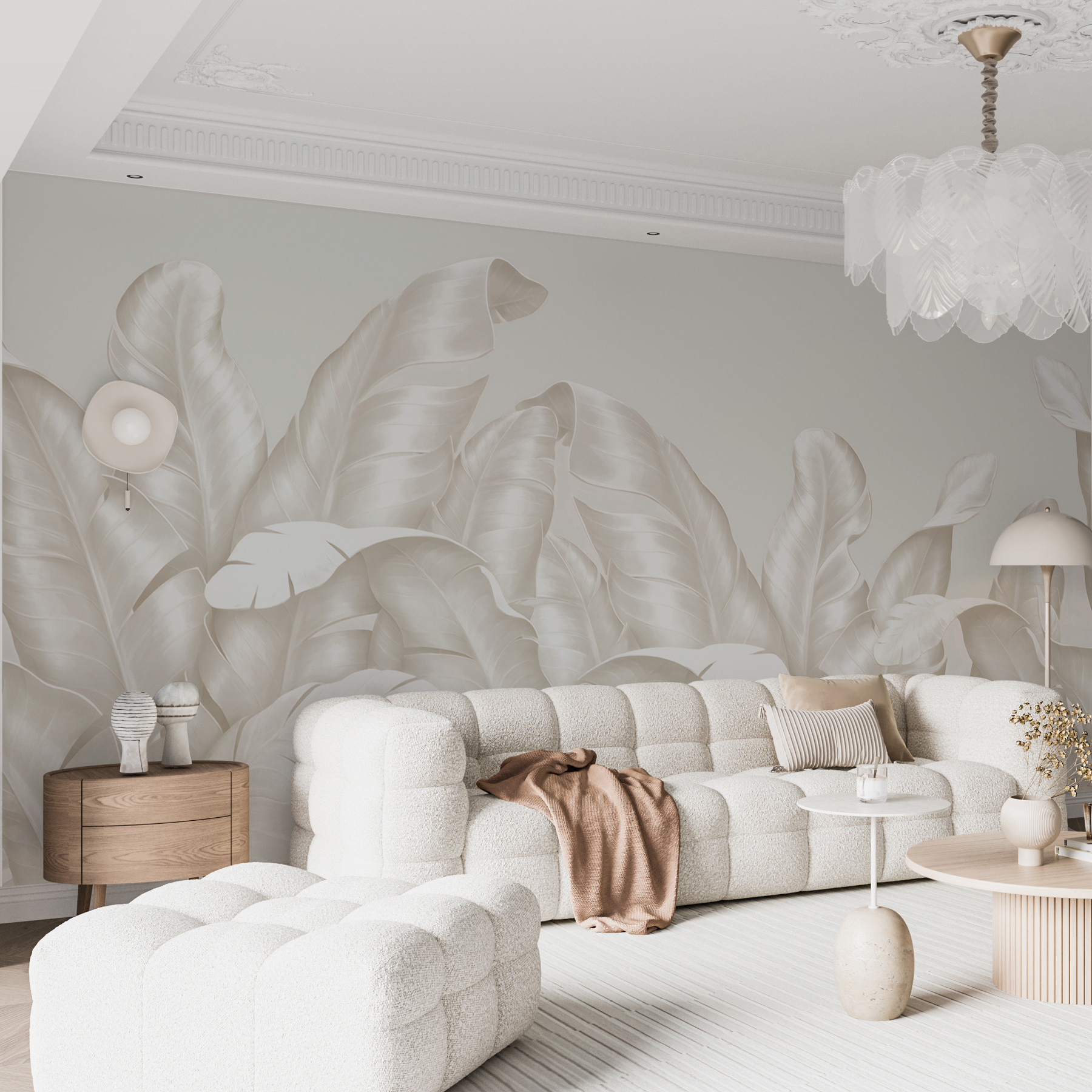 Vi è mai capitato di entrare in una stanza e di sentirvi immediatamente trasportati in un sereno paradiso tropicale? Immaginate questo. Con i “Carta da parati Elegant leaves in soft white hues”, porterete quell’atmosfera lussureggiante e pacifica direttamente a casa vostra. È come fare una mini-fuga ogni giorno. Queste foglie, nelle loro delicate tonalità bianche, aggiungono un’eleganza così rilassante a qualsiasi spazio: praticamente sussurrano tranquillità. Immaginatele nel vostro salotto: queste sottili trame creano un rifugio accogliente e naturale. Oppure in un ufficio: trasforma una parete insipida in una fuga rinfrescante. È come essere abbracciati dalla natura, senza gli insetti o l’umidità! Perfetto per chi ama un tocco tropicale ma lo preferisce con un tocco morbido e sofisticato. Una stanza decorata con questo murale diventa più di un semplice spazio: è un’esperienza, un rifugio personale.