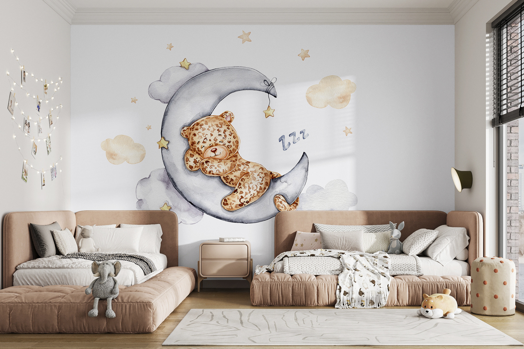 Immaginate di guardare in alto e di vedere un adorabile orsacchiotto che sonnecchia sulla luna! Questo murale “Teddy Bear Sleeping on the Moon” è proprio quello che ci vuole per aggiungere un pizzico di magia alla stanza di ogni bambino. È perfetto per le camerette o per le stanze dei bambini che hanno bisogno di un pizzico di fantasia. Immaginate le notti tranquille e sognanti con questo dolce orso che veglia. I colori tenui e il design giocoso rendono il momento della nanna accogliente e incantevole. Davvero, è come un caldo abbraccio alla parete! Chiunque lo veda non potrà che sorridere. Inoltre, è un ottimo spunto di conversazione per qualsiasi stanza. Un tocco affascinante che aggiunge pura gioia!