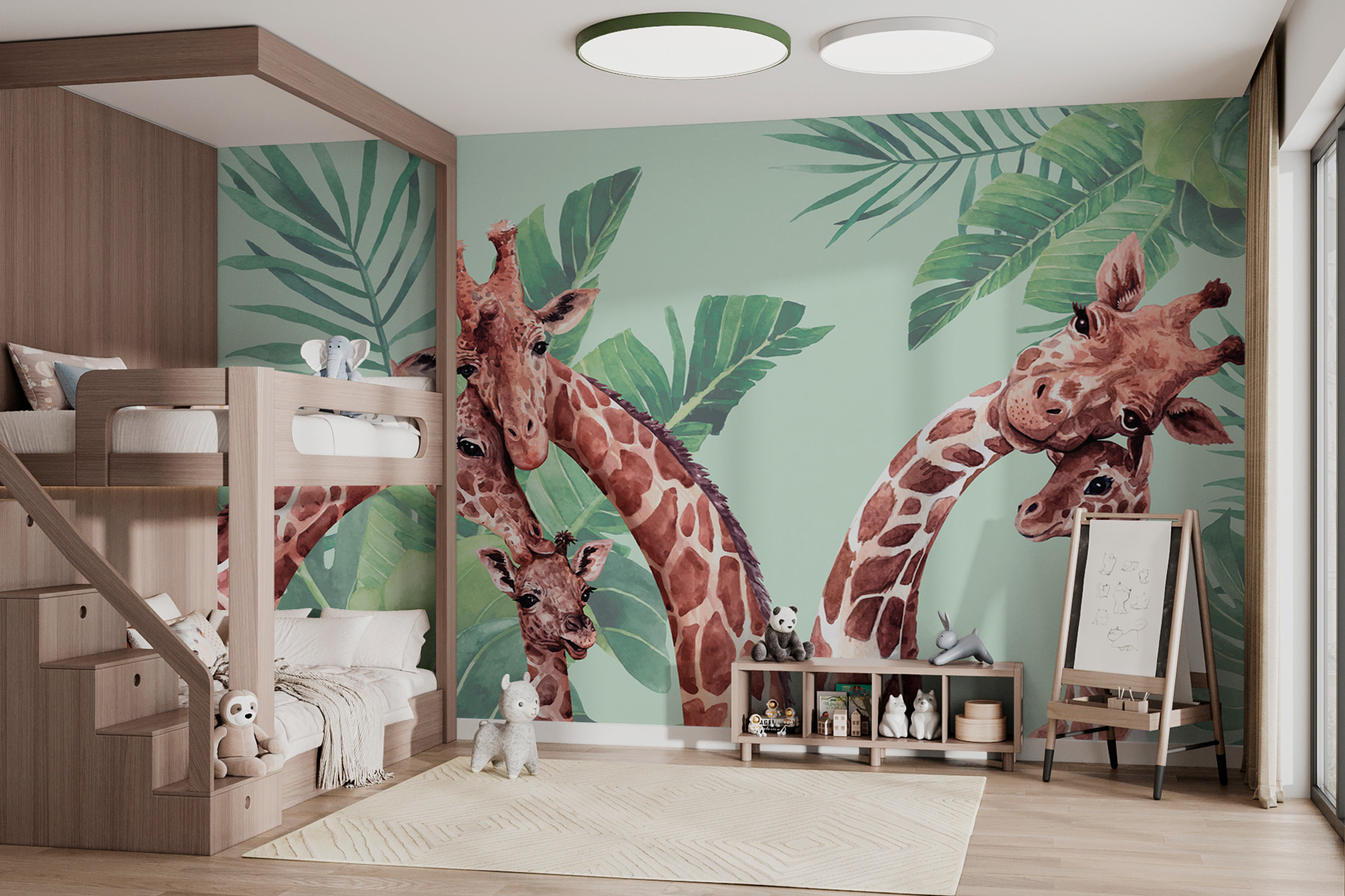 Immaginate di entrare in una stanza ed essere accolti da un allegro gruppo di giraffe su uno sfondo verde e rigoglioso. Questo murale è come portare un’allegra fetta di safari direttamente a casa vostra. Perfetto per le camere dei bambini, le camerette o qualsiasi altro spazio che necessiti di un tocco divertente e ispirato alla natura. Ogni giraffa, con la sua espressione adorabile e gentile, sembra dire: “Ehilà, amico!”. È quasi come se questi animali allampanati facessero capolino da una giungla, aggiungendo un senso di avventura e stravaganza. Se conoscete qualcuno che ama gli animali o vuole infondere un po’ di natura selvaggia nel suo arredamento, questo murale è una scelta fantastica. Inoltre, chi non sorriderebbe ogni volta che vede questi giganti gentili? Che si tratti dei bambini che immaginano di giocare sotto gli alberi o delle tonalità verdi che calmano una lunga giornata, questo murale è più di una semplice carta da parati: è una vibrazione.