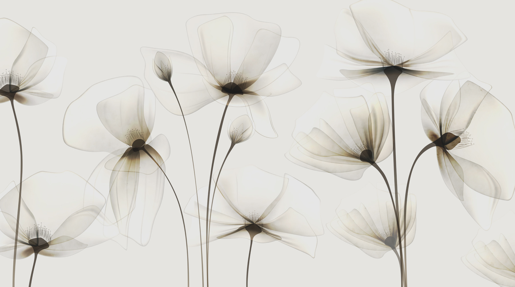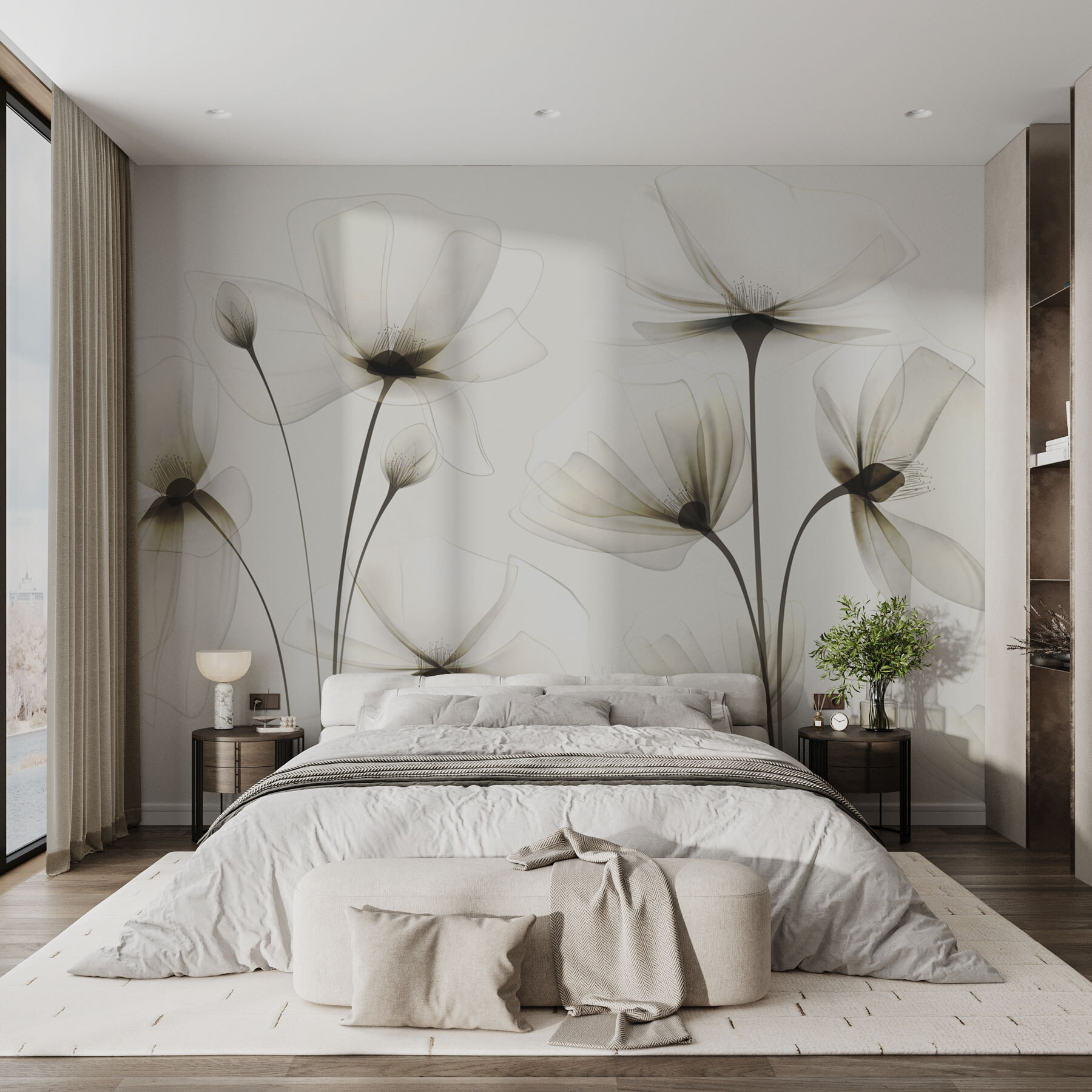 Sentite che le vostre pareti hanno bisogno di un po’ di magia? Date un’occhiata a questo murale con questi fiori così delicati che sembrano quasi fluttuare a mezz’aria. I petali morbidi e trasparenti su uno sfondo bianco e pulito emanano un’atmosfera serena e rilassante. Immaginate di svegliarvi ogni giorno con questa bellezza, come se aveste un giardino tranquillo senza doverlo innaffiare.