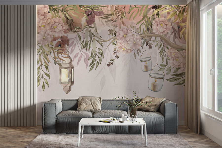 Perfetto per una camera da letto, un soggiorno o anche un caffè chic, questo murale trasforma qualsiasi spazio in un rifugio stravagante. Avete una parete vuota che chiede un po’ di personalità? Questa è la risposta. Non è solo una parete: è un’esperienza, un’occasione per sollevare l’umore e avviare una conversazione. Perché non lasciare che questi fiori e queste lanterne illuminino la vostra vita?
