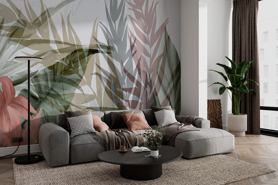 Immaginate questo: un murale che trasforma la vostra parete in un’oasi serena. Vi presentiamo il nostro disegno floreale astratto con foglie stratificate. È come una mini-vacanza ogni volta che si entra nella stanza. Quei morbidi strati di foglie e fiori – quasi come una leggera brezza che fruscia in una foresta tropicale. I colori tenui si fondono in una danza rilassante, rendendo ogni spazio fresco e tranquillo.