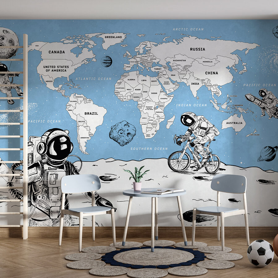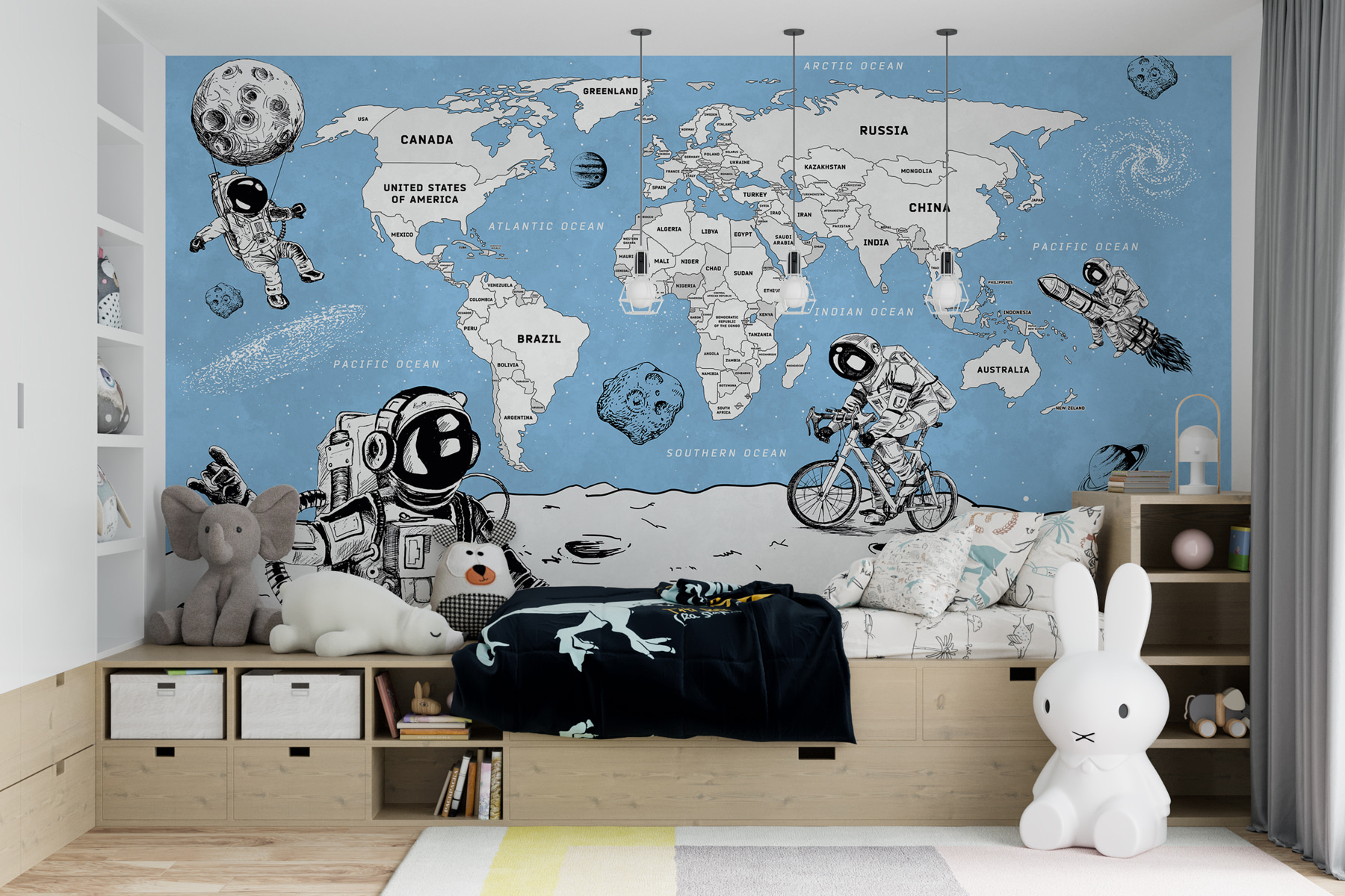 Immaginate questo murale che illumina la vostra stanza: è come entrare in un mondo completamente nuovo! Il disegno di un astronauta che pedala su una bicicletta proprio sulla luna, con la Terra che fluttua dolcemente sullo sfondo. È eccentrico, vivace e un po’ magico. Perfetto per i bambini o per chiunque abbia ancora un cuore da bambino.