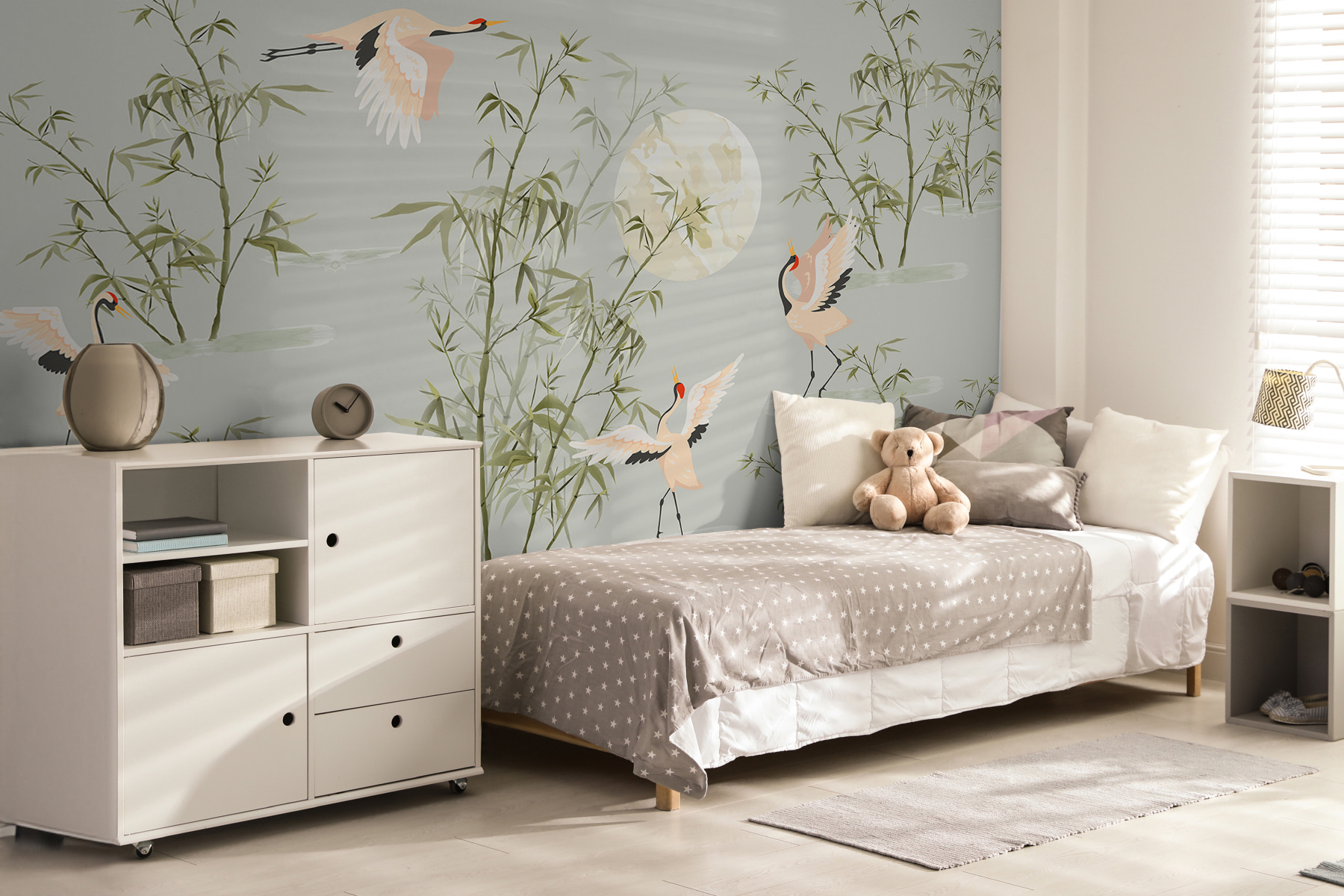 Trasformate qualsiasi spazio in una fuga serena con questo delizioso murale che raffigura gru e bambù sotto un cielo lunare. È come invitare la natura a casa vostra, e siamo onesti, chi non vorrebbe una scena pacifica al chiaro di luna da guardare durante le lunghe giornate di lavoro da casa? Immaginatevi di osservare le eleganti gru in volo, sentendovi avvolti da un po’ di calma. È abbastanza stravagante da far sognare ad occhi aperti, ma abbastanza concreto da adattarsi perfettamente a qualsiasi stanza. Date una rinfrescata alle vostre pareti: non è solo arredamento, è un’esperienza che aspetta di essere vissuta!