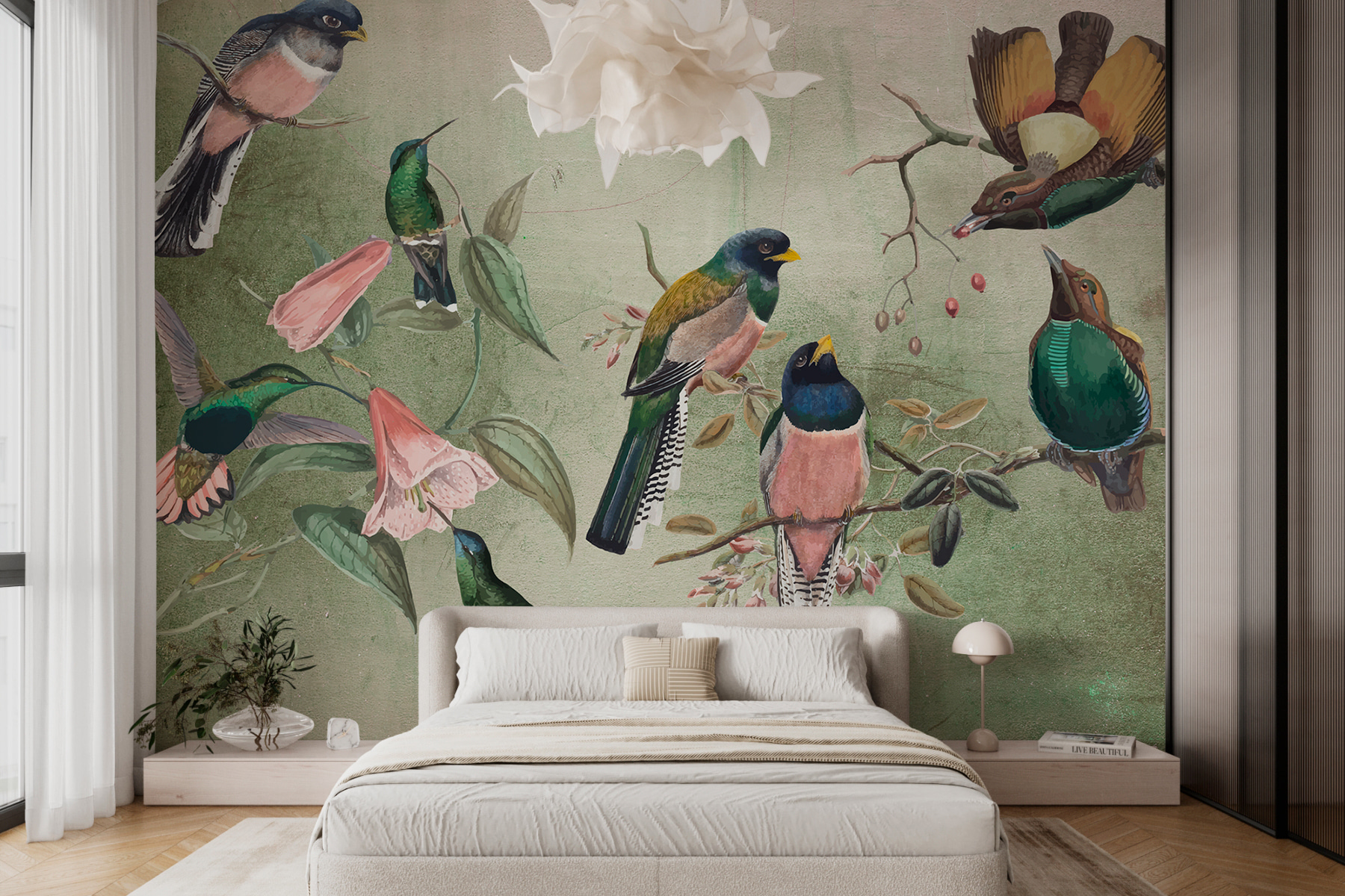 Immaginate di svegliarvi con un’allegra serenata di uccelli colorati appollaiati sui rami, senza dover mai lasciare il vostro accogliente letto! Questo murale “Gruppo di uccelli su un ramo” è come avere una piccola fetta di natura proprio nel vostro salotto. Il delizioso mix di uccelli e fiori emana un’atmosfera tranquilla e vivace che fa venire voglia di versare una tazza di tè e sedersi per un po’. Perfetto per gli amanti degli uccelli o per chi desidera un tocco di natura all’interno della propria casa. Ogni sguardo a questo murale è un momento di pura gioia. Bonus: non dovrete preoccuparvi di dare da mangiare a questi amici pennuti!