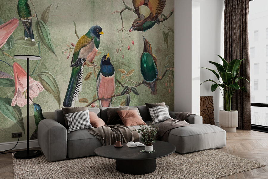 Immaginate di svegliarvi con un’allegra serenata di uccelli colorati appollaiati sui rami, senza dover mai lasciare il vostro accogliente letto! Questo murale “Gruppo di uccelli su un ramo” è come avere una piccola fetta di natura proprio nel vostro salotto. Il delizioso mix di uccelli e fiori emana un’atmosfera tranquilla e vivace che fa venire voglia di versare una tazza di tè e sedersi per un po’. Perfetto per gli amanti degli uccelli o per chi desidera un tocco di natura all’interno della propria casa. Ogni sguardo a questo murale è un momento di pura gioia. Bonus: non dovrete preoccuparvi di dare da mangiare a questi amici pennuti!