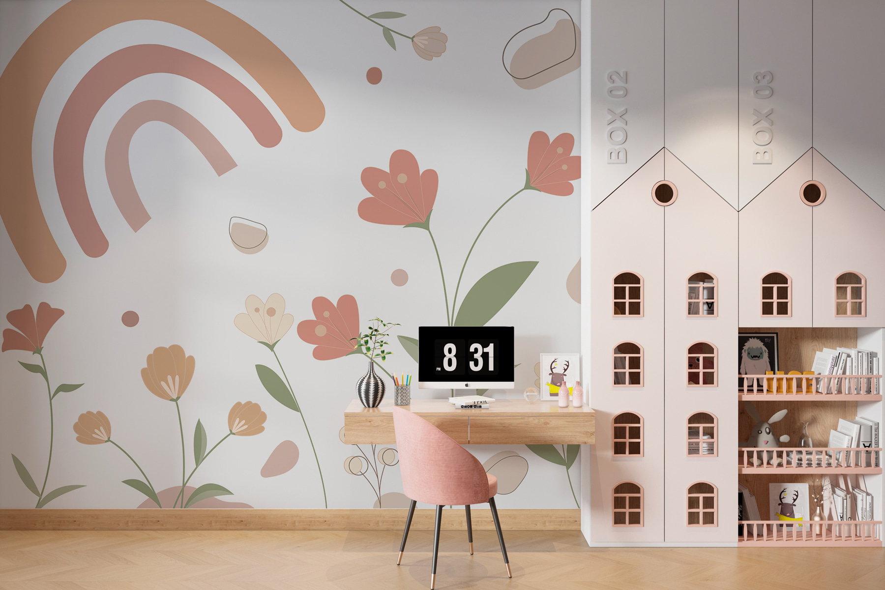 Avete mai sognato di avere una fetta di tranquilla bellezza proprio nel vostro salotto? Sì, anche noi. Questo murale “Abstract Pastel Flowers and Rainbow” non è solo un’opera d’arte: è come portare un giardino sereno e un pizzico di fantasia in casa. Immaginate di entrare in una stanza e di essere accolti da fiori morbidi in tonalità delicate, con un simpatico arcobaleno a ravvivare il tutto. Perfettamente pastello, questo disegno sussurra calma e gioia. Ideale per un angolo accogliente o per fare bella mostra di sé in corridoio: la vostra dose quotidiana di belle vibrazioni. 🌸🌈