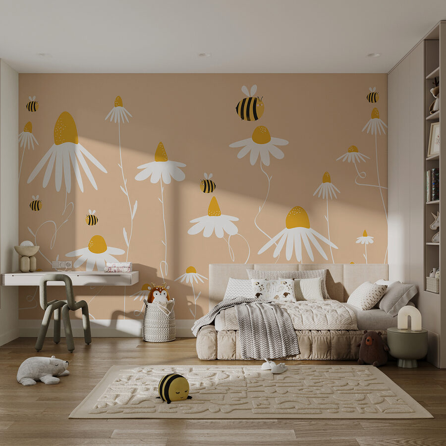 E quelle simpatiche api che ronzano intorno: troppo carine, vero? Aggiungono un tocco delizioso che sembra vivo e ronzante di energia. Che siate giovani o semplicemente giovani di cuore, questo murale ha quel fascino imperdibile che trasforma qualsiasi stanza da “meh” a “meravigliosa”.
