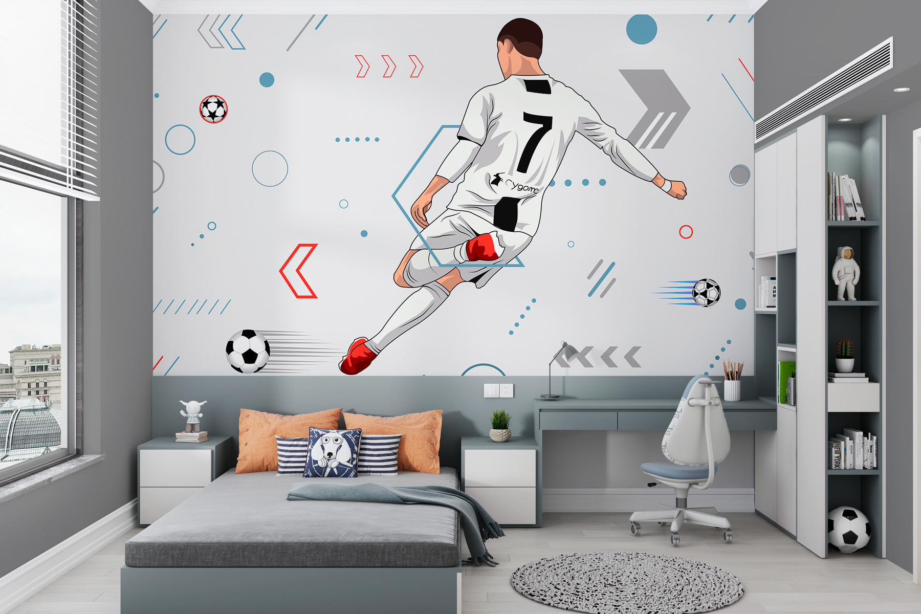 Immaginate di entrare nella vostra stanza e di essere accolti da questo epico murale di un giocatore di calcio che calcia un pallone con tutte le sue forze. Potete quasi sentire l’energia e la passione che si sprigionano dalla parete! Perfetto per tutti gli appassionati di calcio, sia che si tratti di un futuro Messi o di qualcuno che semplicemente ama il bel gioco. Grazie alle linee dinamiche e ai colori vivaci, questo murale è una vera e propria dichiarazione: è come avere un mini stadio a casa vostra. Ideale per la stanza dei bambini, per la grotta dell’uomo o anche per l’ufficio, se vi sentite un po’ avventurosi. Ogni volta che lo guarderete, immaginerete il brivido della partita e forse vi sentirete anche un po’ ispirati a iniziare la giornata con lo stesso spirito infuocato. Non è solo una decorazione, è un’esplosione di emozioni sulla vostra parete!