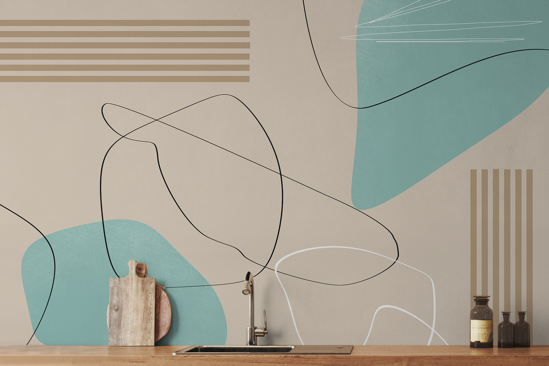 Immaginate di entrare in una stanza e di sentirvi avvolgere da un’ondata di fresca calma. Questo murale “Sfondo blu e bianco con linee nere” fa proprio questo effetto. È come una danza funky tra tinte pastello e linee eleganti: abbastanza astratta da renderla interessante, ma abbastanza semplice da adattarsi ovunque. Perfetto per chi ama un tocco di arte moderna senza esagerare. È perfetto per un salotto, ma non trasformerebbe anche un ufficio? Ha quell’atmosfera da “non si può guardare via” senza essere troppo visibile. Super chic, un po’ giocosa, è un’opera subito preferita nelle collezioni “Murales astratti” e “Carta da parati di design per pareti”.