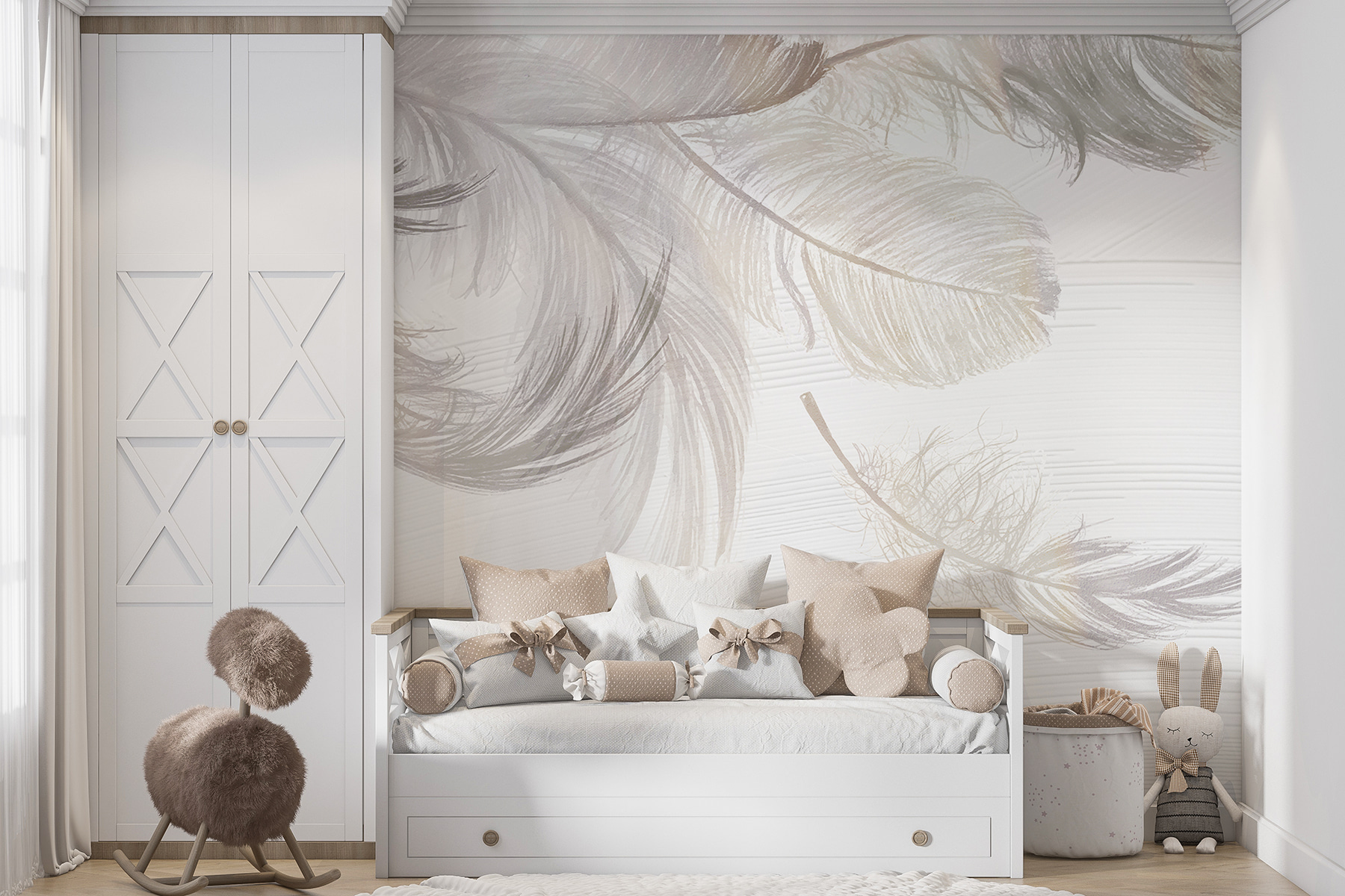 Immaginate di entrare in una stanza dove i dolci sussurri della natura vi abbracciano. Questo murale, caratterizzato da morbide piume bianche su una superficie tranquilla, invita a un senso di pace ed eleganza. È come una boccata d’aria fresca, che risolleva lo spazio senza sforzo. Perfetto per un accogliente angolo lettura o per una camera da letto rilassante, stabilisce un tono sereno che è giusto per i momenti di relax. Immaginate di sorseggiare un tè con un buon libro, sentendo il peso del mondo sollevarsi un po’. È sottile, ma accattivante, come un morbido segreto che aspetta di essere scoperto. Un piccolo tocco che fa una grande differenza!