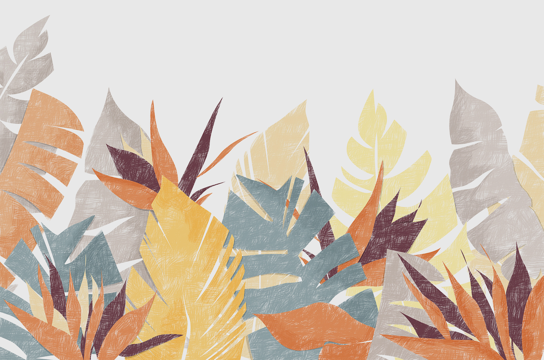 Wow, guardate questo murale, pieno di foglie colorate! Immaginate di tornare a casa ogni giorno con questo spettacolo. È come portare una fetta di avventura tropicale nel vostro salotto. I disegni delle foglie sono così vivaci e variegati che sembra quasi che ondeggino in una dolce e magica brezza.