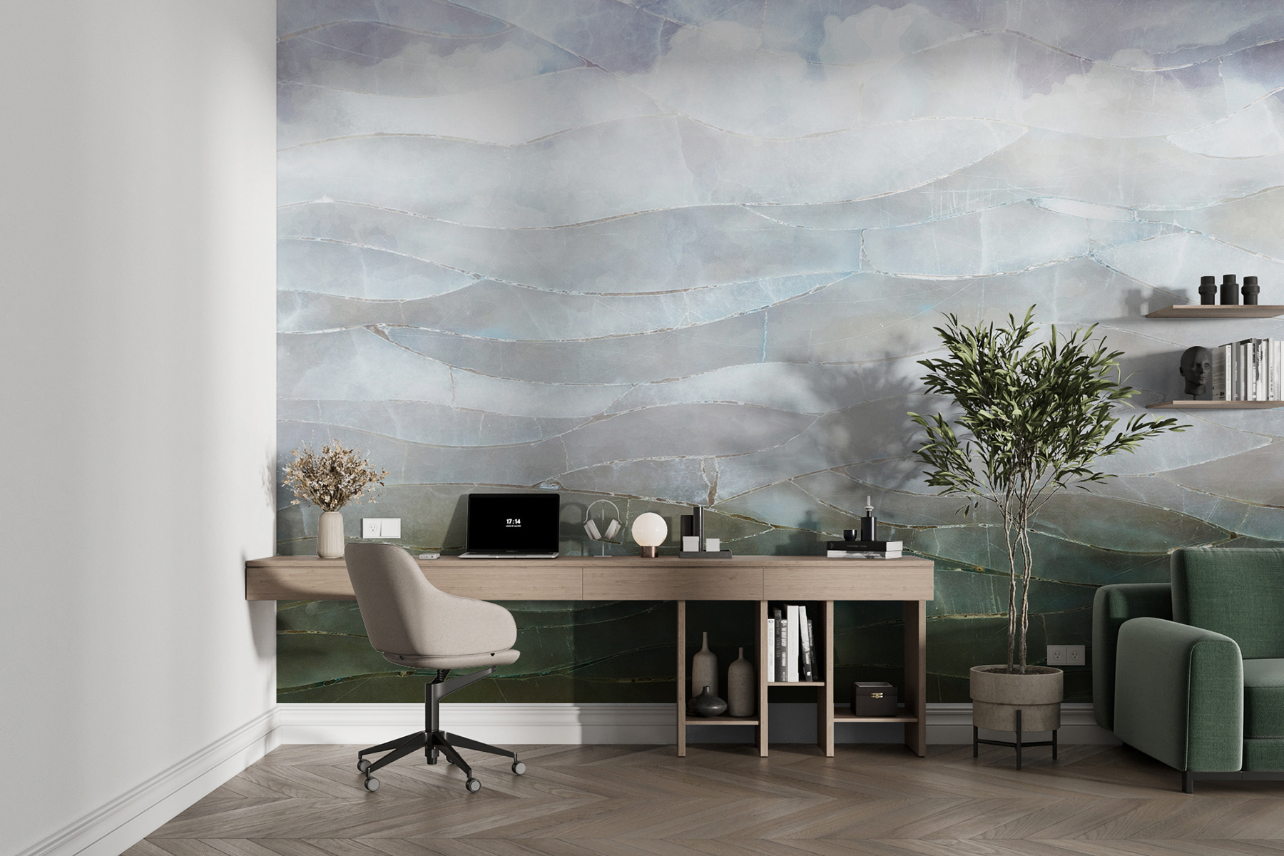 Immaginate questo: tornate a casa dopo una lunga giornata, vi buttate sul divano e guardate la vostra parete: sarete immediatamente trasportati in un luogo dove il cielo incontra il mare, con una miscela di colori e texture senza soluzione di continuità. I motivi ondulati hanno un fantastico effetto 3D che fa sembrare la parete quasi viva. Piuttosto bello, vero? È perfetto per il soggiorno, la camera da letto o anche per uno spazio di lavoro creativo.