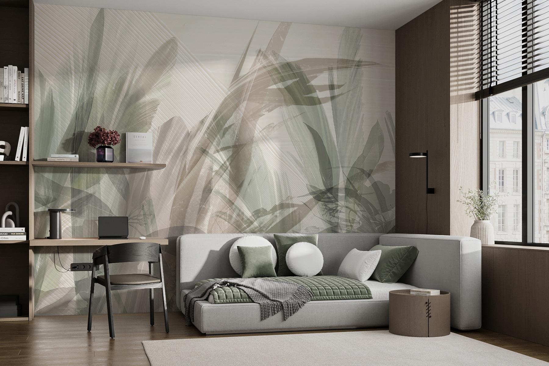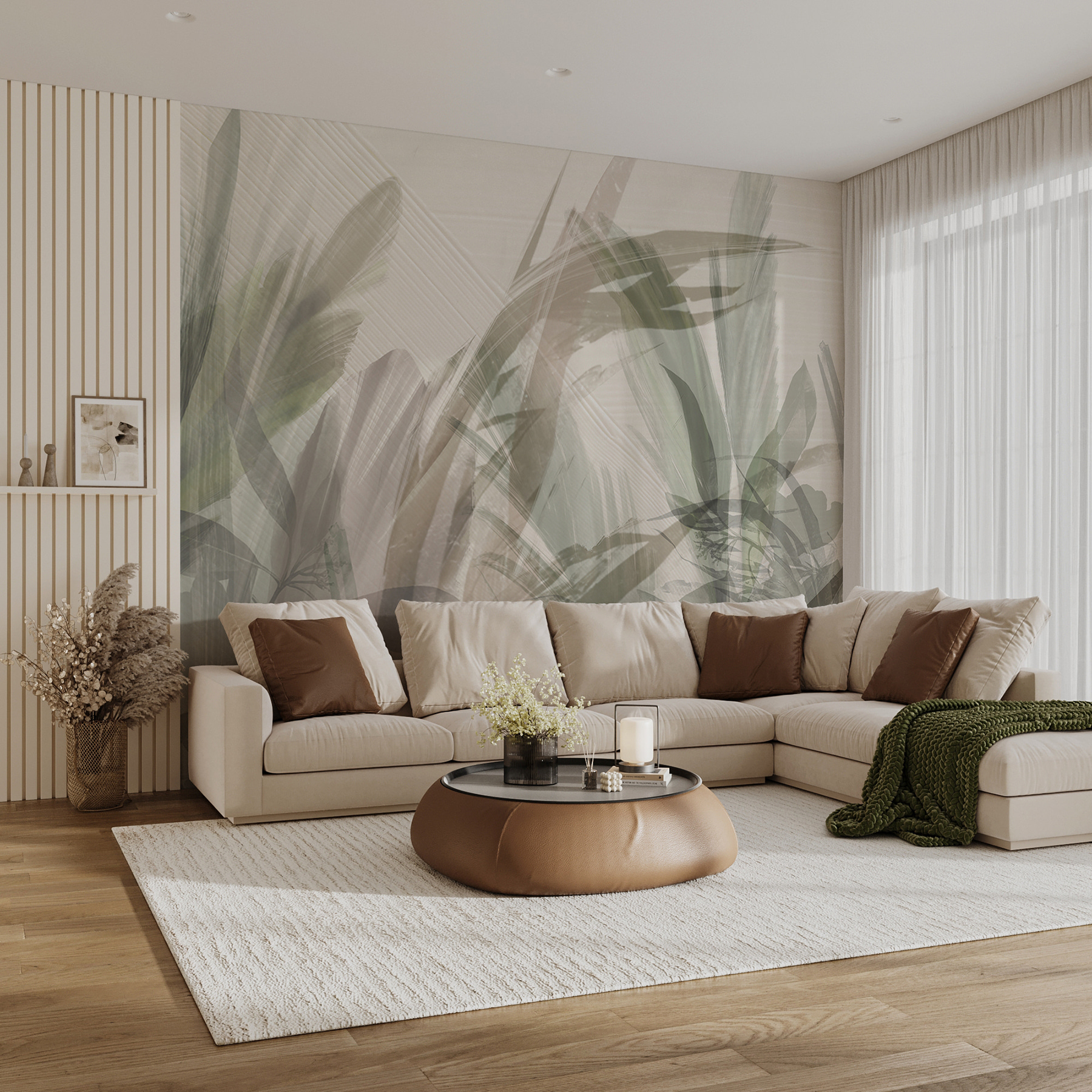 Volete portare la natura in casa? Date un’occhiata a questo splendido murale intitolato “Natura astratta: Delicate impressioni di foglie”. Immaginate questa morbida miscela di foglie acquerellate che trasforma il vostro spazio in un rifugio accogliente e sereno. È come una foresta, ma senza gli insetti! Le tonalità tenui e i motivi a foglia creano una calma sussurrante che farà sentire il vostro salotto, la vostra camera da letto o persino il vostro ufficio come un rifugio tranquillo. Perfetto per chi ama la bellezza del fogliame ma non vuole occuparsi dell’annaffiatura delle piante (non è un giudizio!). Questo murale si adatta a molti stili, dal moderno al boho, e aggiunge un tocco di natura senza sovraccaricare la stanza. Inoltre, è un ottimo spunto di conversazione: “È una felce o una palma?”. Si chiederanno i vostri ospiti. Aggiungerlo all’arredamento è come dare alle pareti un dolce abbraccio.