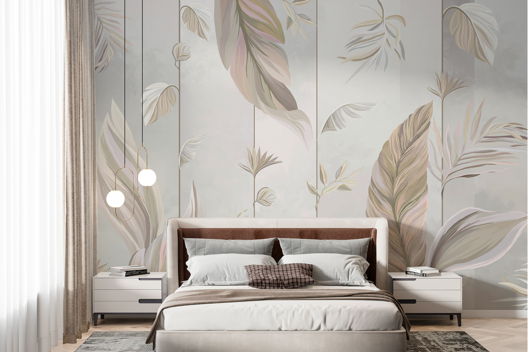 Trasformate il vostro spazio con il murale “Elegant Leaves”! Immaginate di trovarvi in un giardino sereno ogni volta che entrate nella stanza. Le morbide tonalità pastello sono come un dolce sussurro di colore, che fa sentire tutto calmo e rinfrescato. È il tipo di murale che fa venire voglia di sedersi con un buon libro (e magari una tazza di tè).